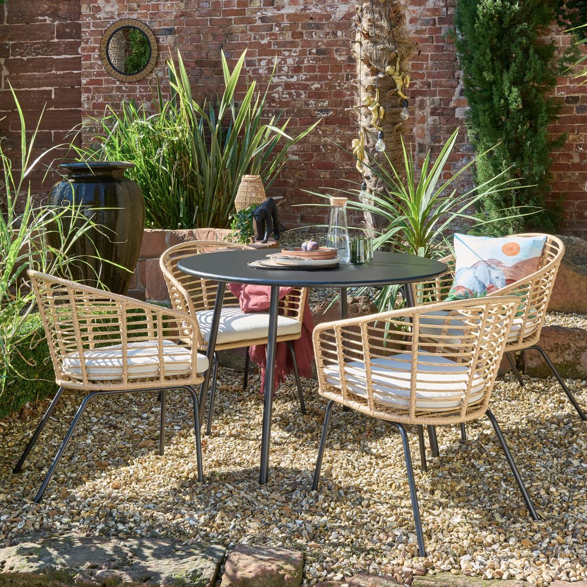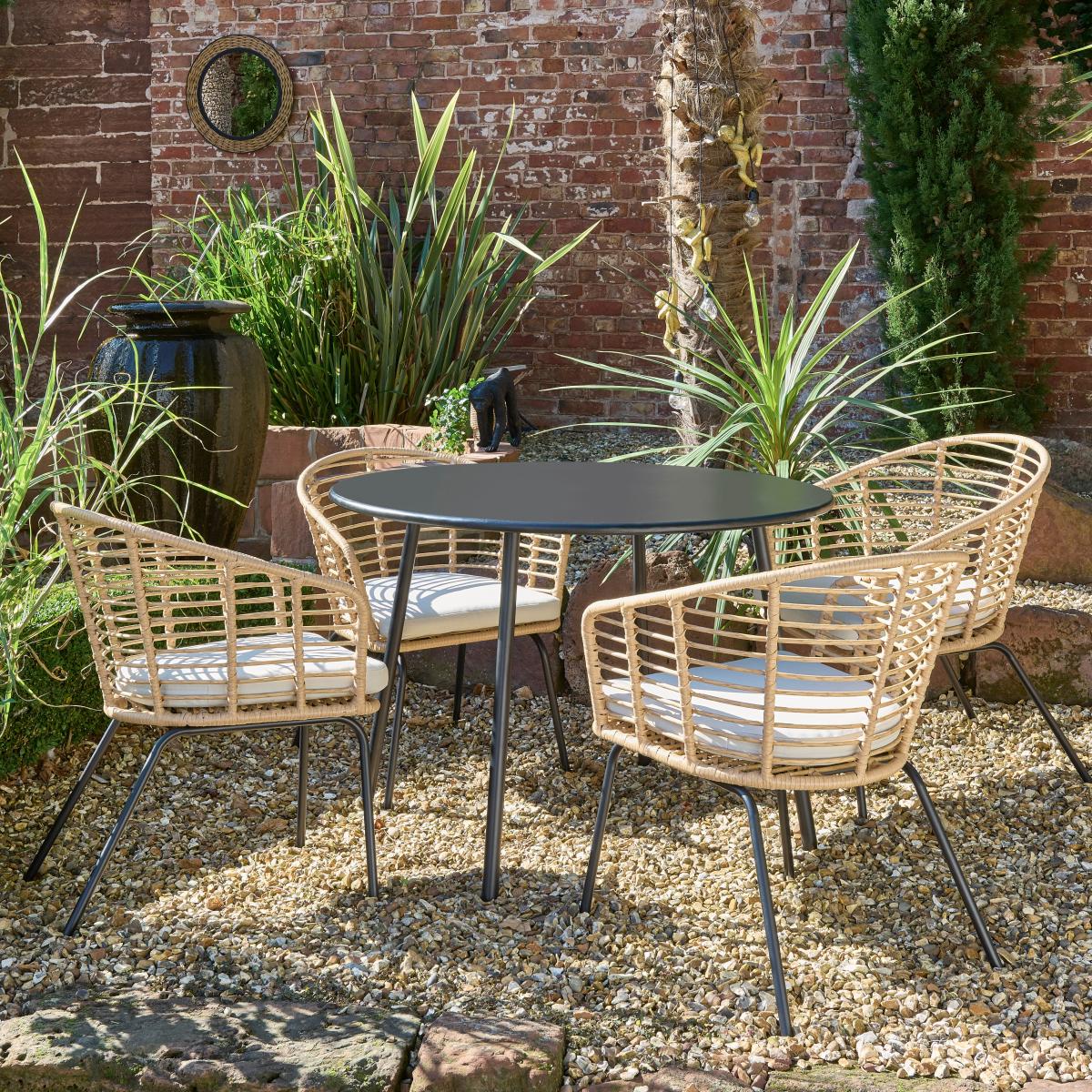 Gather your family and friends around the table with this stunning four-seater outdoor dining set. This chic, contemporary set is perfect for enjoying a meal or just a cup of coffee outdoors. The lightweight aluminium frames and rattan weave add an effortless, relaxed feel to any space, while the tempered glass top adds a touch of sophistication. Enjoy lasting beauty and quality comfort that you won’t find anywhere else.