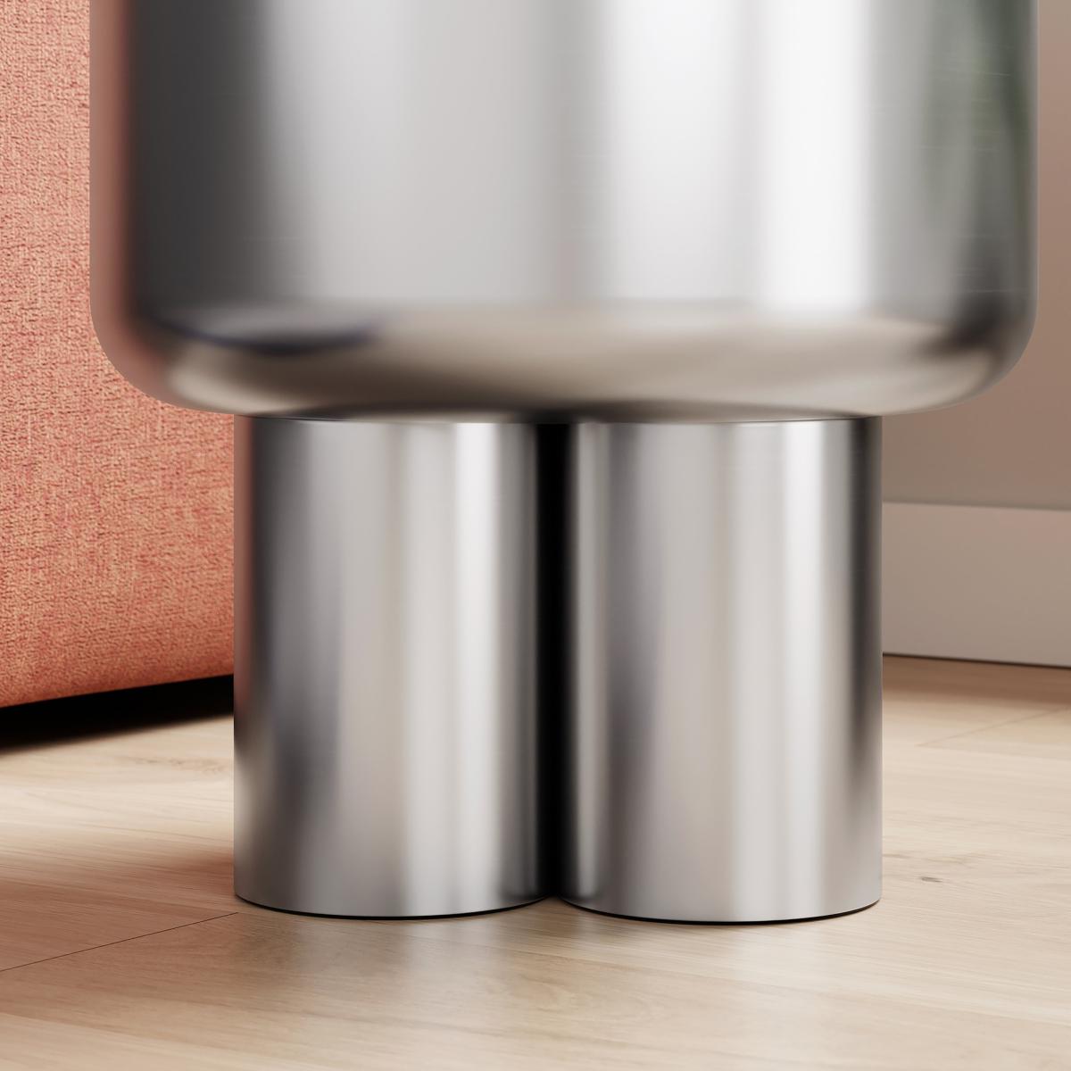 I love this little side table for its sleek, sculptural form and modern metallic finish. It works particularly well in contemporary or minimalist interiors, where its bold yet understated presence can add a sophisticated touch. Its versatile shape allows it to sit comfortably beside a sofa or bed, and it’s perfect for holding a lamp, drinks, or decorative pieces. For styling, consider pairing it with textured fabrics and neutral tones to highlight its reflective surface, or inject colour with bold accessories placed on top. Its sturdy design also makes it practical without compromising on style, making it a smart addition for both functional and aesthetic appeal.