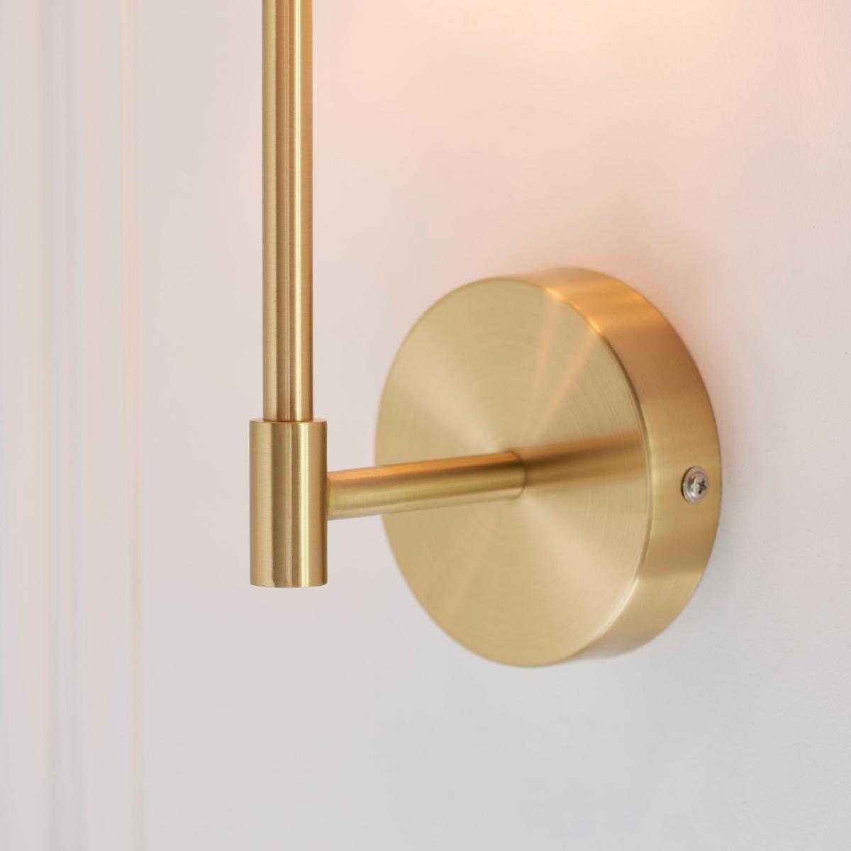 I love this wall light for its sleek satin brass finish, which adds a touch of contemporary elegance while maintaining versatility. It works particularly well in minimalist and modern interiors, but can also elevate more traditional spaces when paired with complementary metals or neutral palettes. Practical styling tips include positioning it on either side of a mirror or artwork to create balanced lighting, or using it alongside other brass accents for a cohesive look. Its simple yet sophisticated design makes it a great option for bedrooms, hallways, or even living rooms, where subtle but effective illumination is needed.