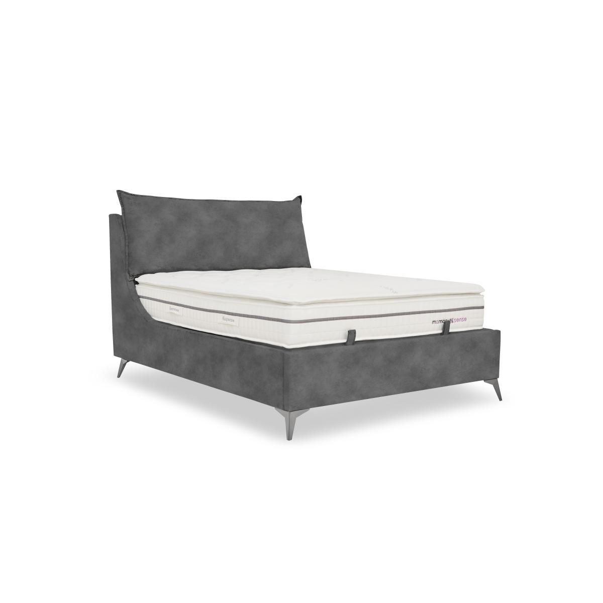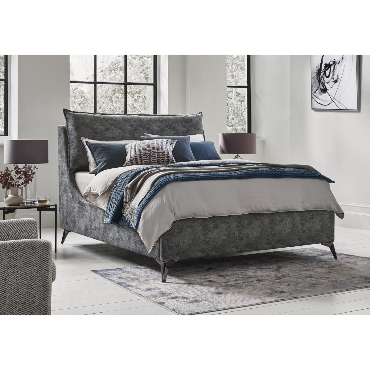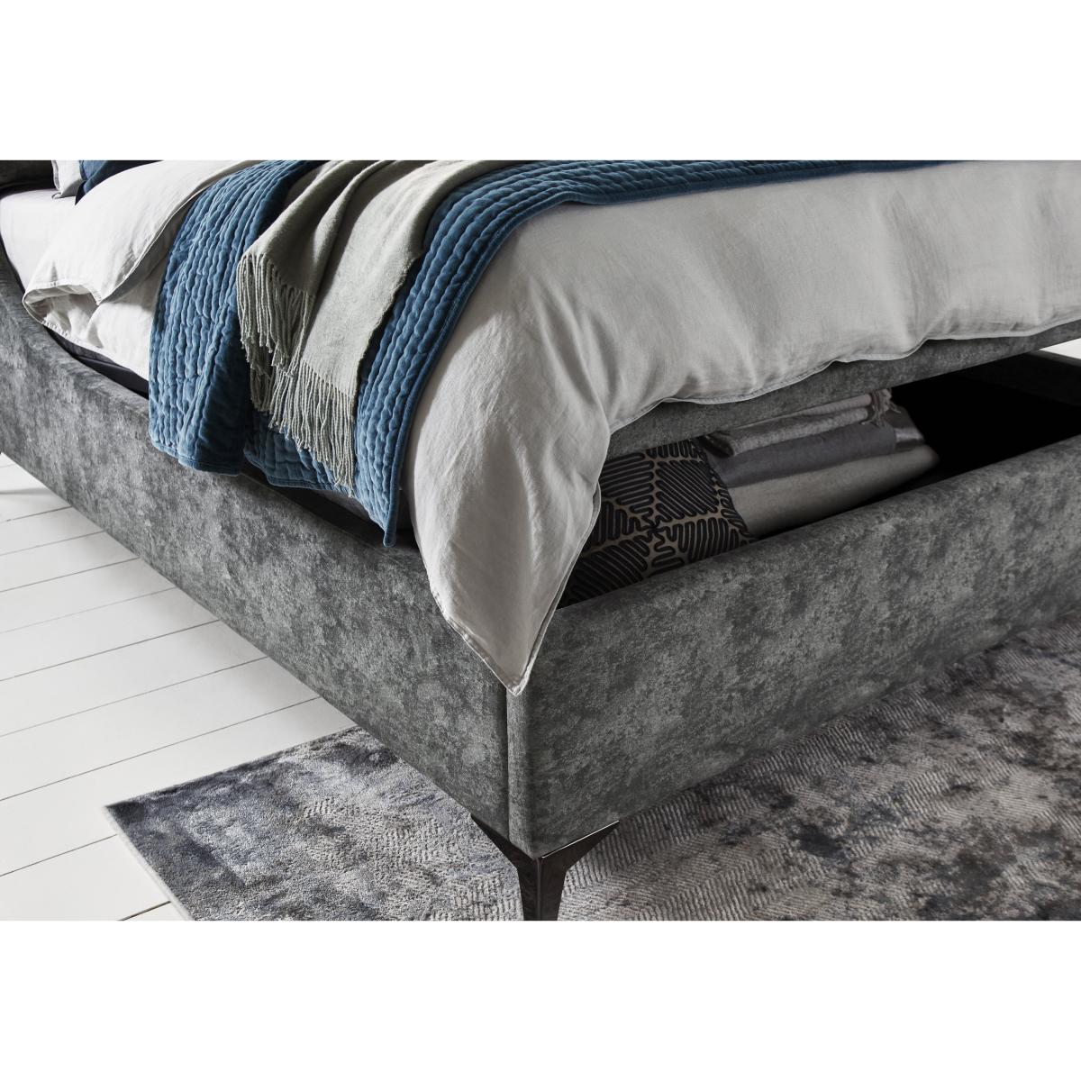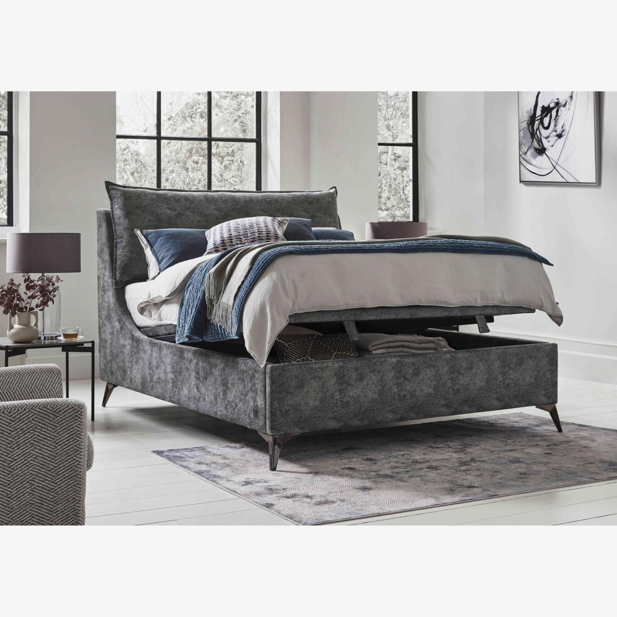 This very stylish ottoman bed frame is made for relaxing. With its large pillow-style headboard and roomy storage space, you can sink into comfort – and easily keep your bedroom neat and tidy. Why you'll love it Fashion-forward design. Pillow-style headboard is perfect for relaxing, reading and TV watching. Spacious underbed compartment. End-lift ottoman design maximises bedroom storage. Slender chrome-effect feet. Choice of luxury upholstery fabrics including velvet. In double, king and super king sizes. The Sanctuary ottoman bed frame is a Furniture Village exclusive. What you need to know Mattress sold separately. Please keep hands clear of the mechanism when opening and closing. Clean regularly using a soft brush or vacuum with the curtain attachment. Deal with any spills promptly. Professional cleaning advised for oil- and grease-based stains. Some fabrics can show wear on areas of more use or in direct sunlight. Flattening and shading of heavy wear areas on pile fabrics like velvet is unavoidable. Be sure to brush pile fabrics only in the direction of the pile. Please read our upholstery care guide for more advice.