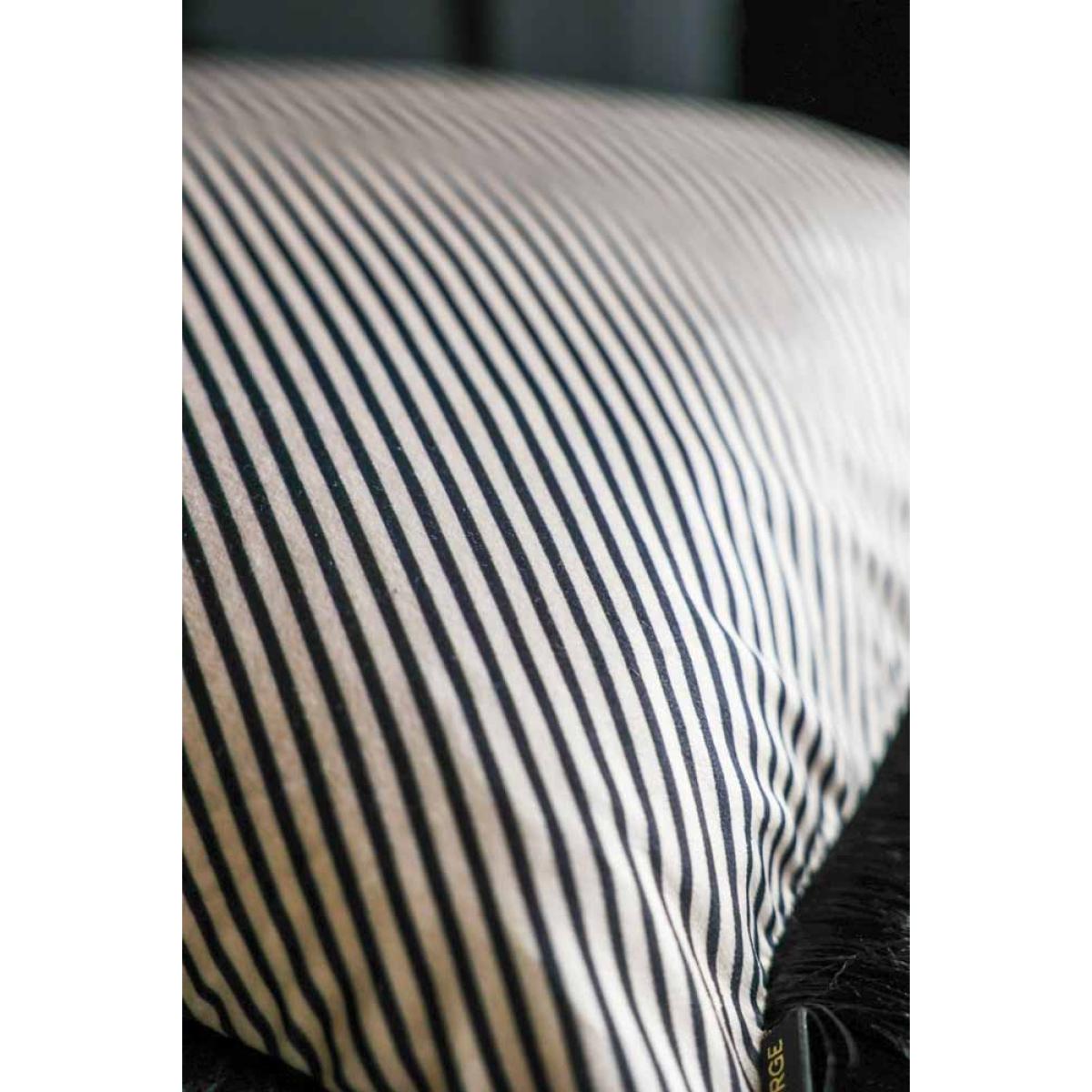 This cushion is a great way to introduce texture and subtle pattern into a neutral or monochrome scheme. I love it because the velvet stripe adds a touch of luxe while the feather filling keeps it comfy-perfect for both sofas and beds. It works really well in eclectic or modern interiors, especially when layered with other textures like faux fur or linen. For practical styling, try pairing it with solid-coloured cushions to let the stripes stand out or mix with other striped or patterned cushions for a more curated look. It's versatile enough to elevate a cosy reading nook or add a refined touch to a statement sofa.