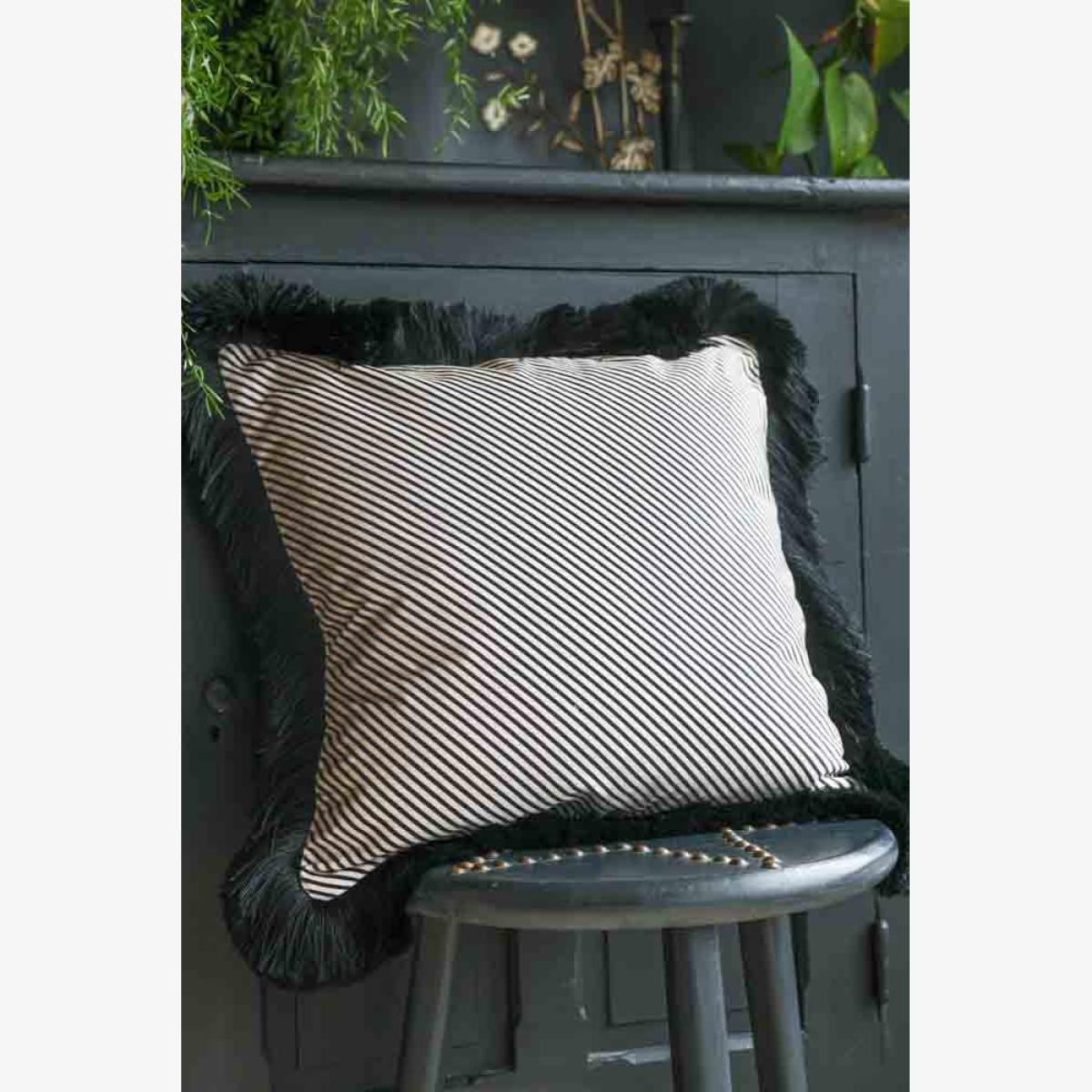Sand Stripe Velvet Fringe Feather Filled Cushion