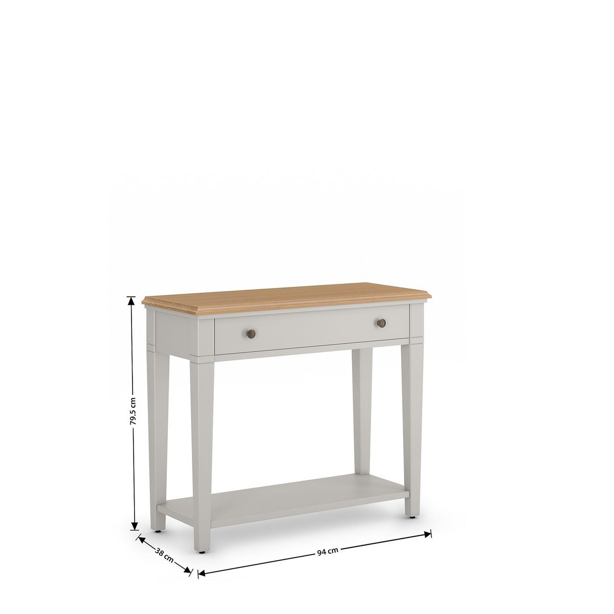 I love this piece for its versatile charm and practicality. The Sandbanks console table works well in both traditional and contemporary interiors, making it ideal for hallways, entryways, or under a large mirror. Its neutral tones and simple design lend themselves to a range of styling options, from displaying decorative items like candles and picture frames to functioning as a surface for keys and mail. For a polished look, keep it minimal with a couple of carefully chosen accessories, or dress it up with a vase of fresh flowers for added colour. Its size and simplicity make it an easy addition to almost any space, offering both style and function without overwhelming the room.
