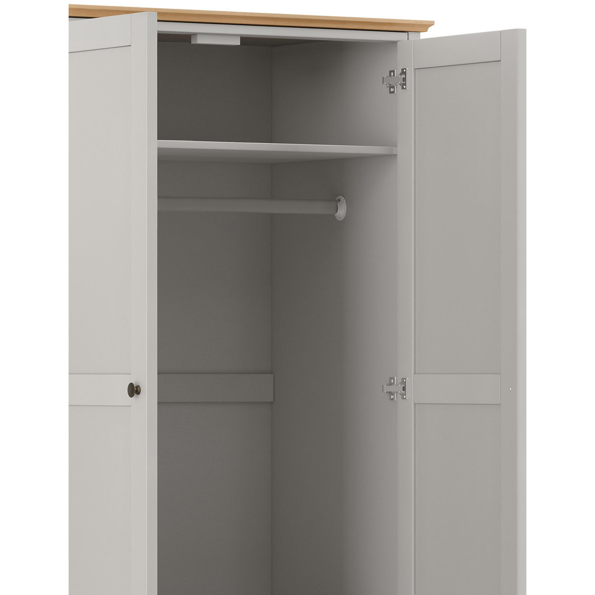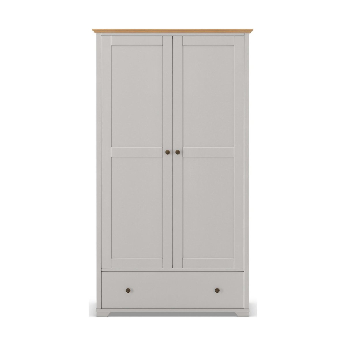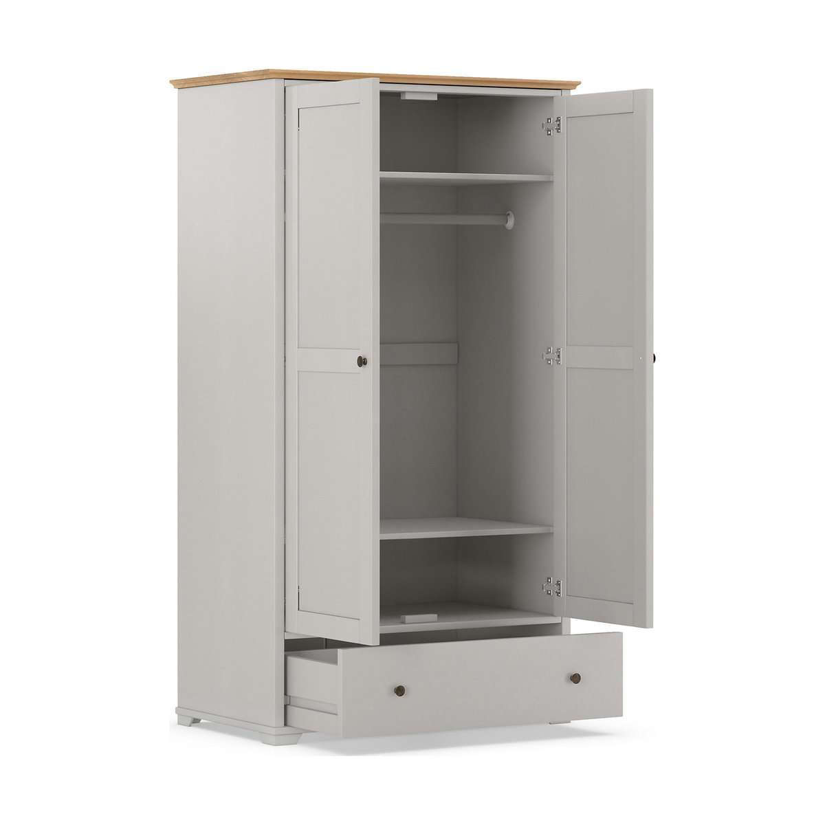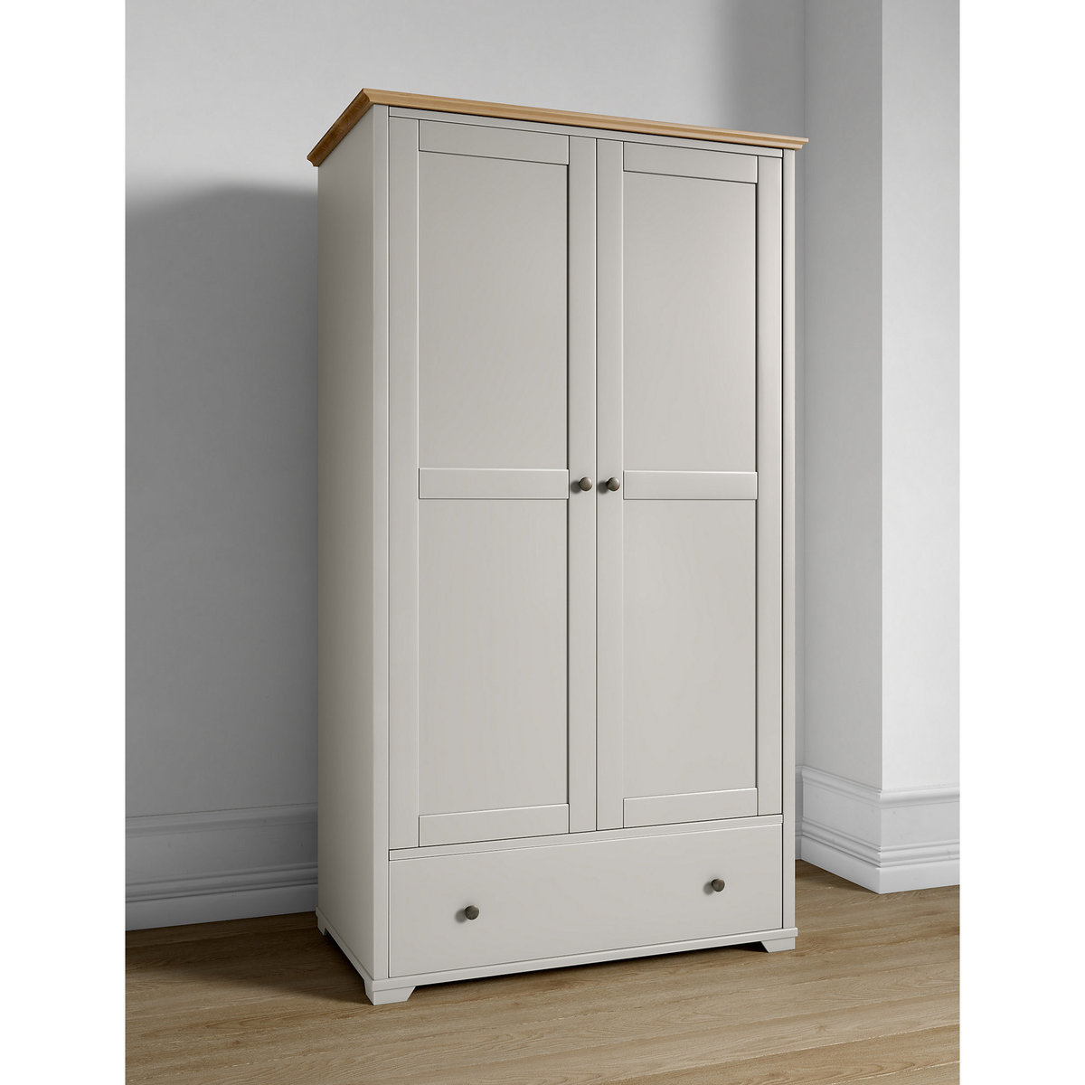 A contemporary take on simple country-style furniture, this practical Sandbanks wardrobe is a sophisticated choice. Featuring a double door space with hanging rail and shelving, as well as a single large drawer beneath. Crafted with a sturdy solid pine top, painted finish and antique-effect metal knobs.