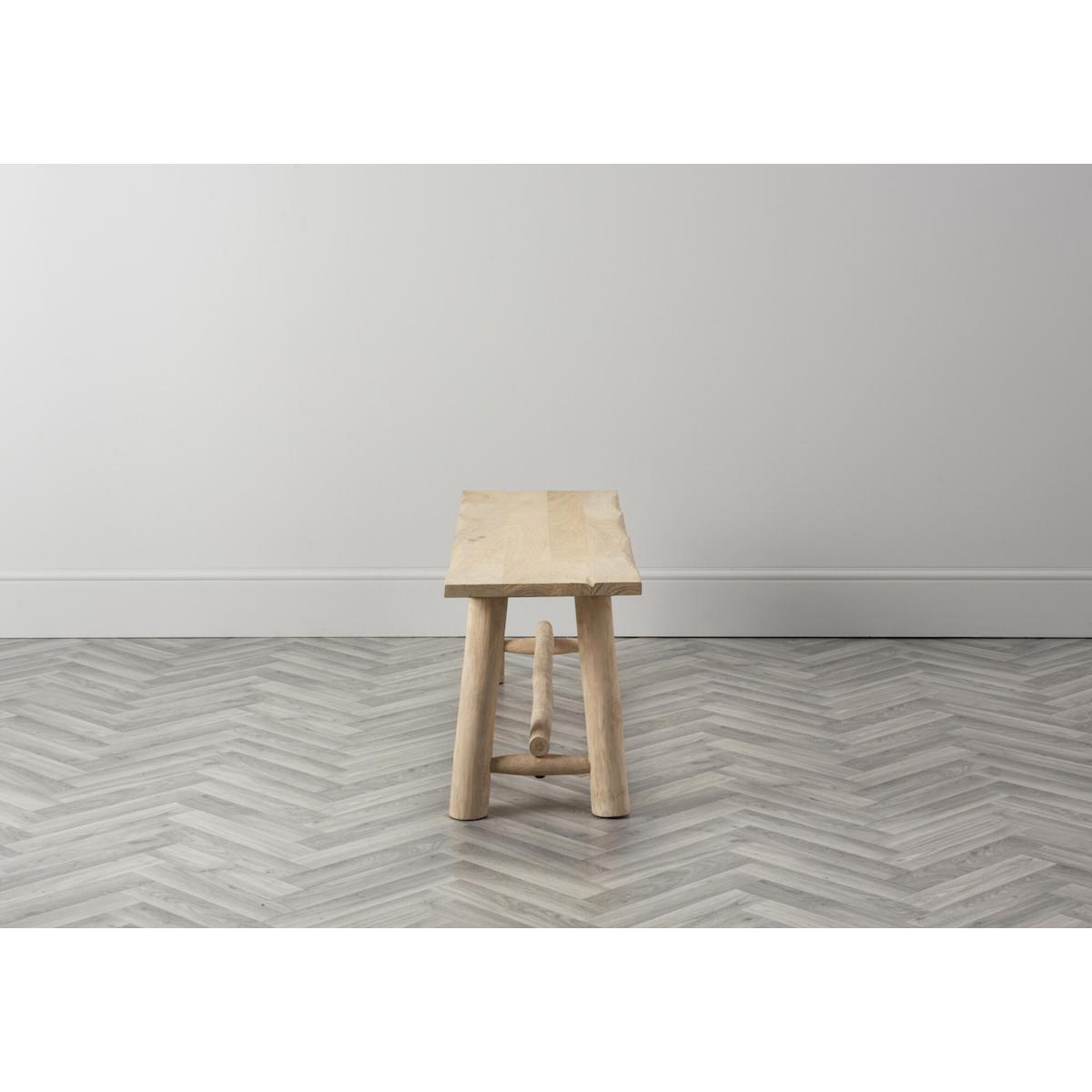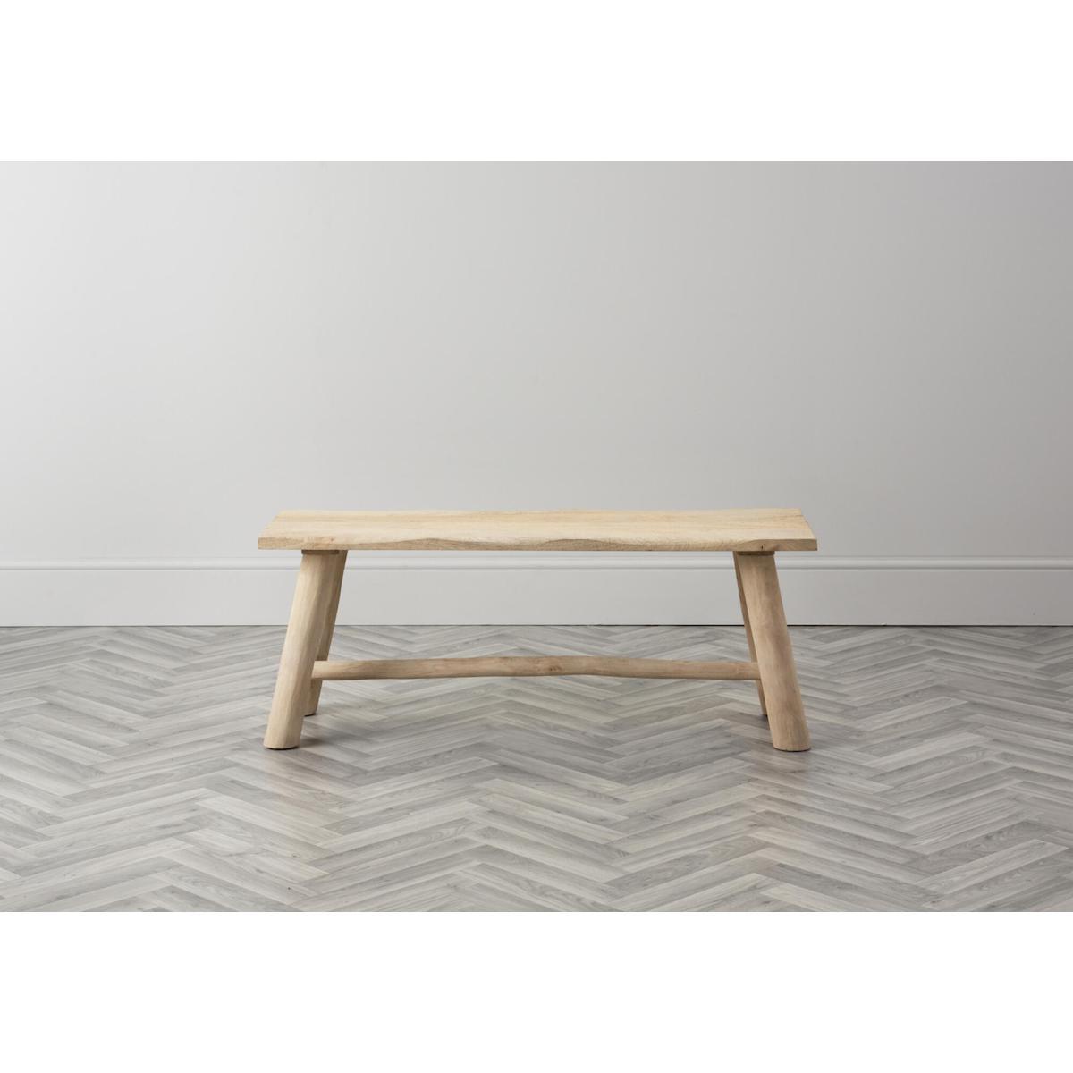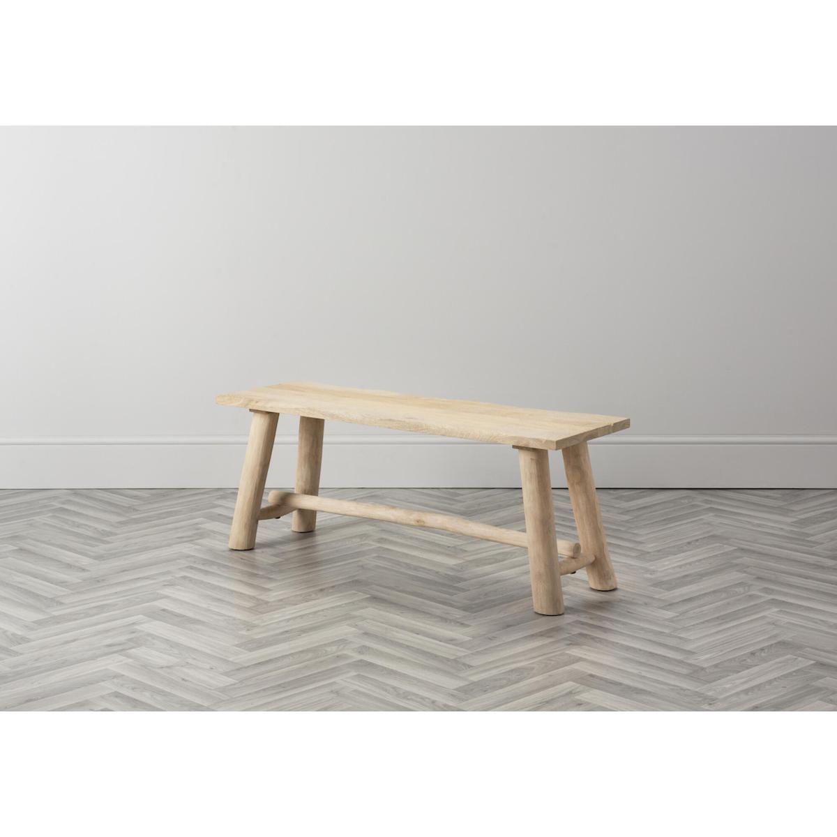 I’m really drawn to this little rustic bench for its pared-back silhouette and soft, light-oak tone - it feels right at home in Scandi, coastal or country interiors without dominating the space. Its size makes it ideal for a hallway landing, tucked beside a console, or at the foot of a bed as an extra perch. For styling, try layering a striped linen throw over one end and placing a low-profile tray with a ceramic vase on top. A woven basket slipped underneath instantly adds useful storage, while a couple of neutral cushions will make it look both inviting and practical.