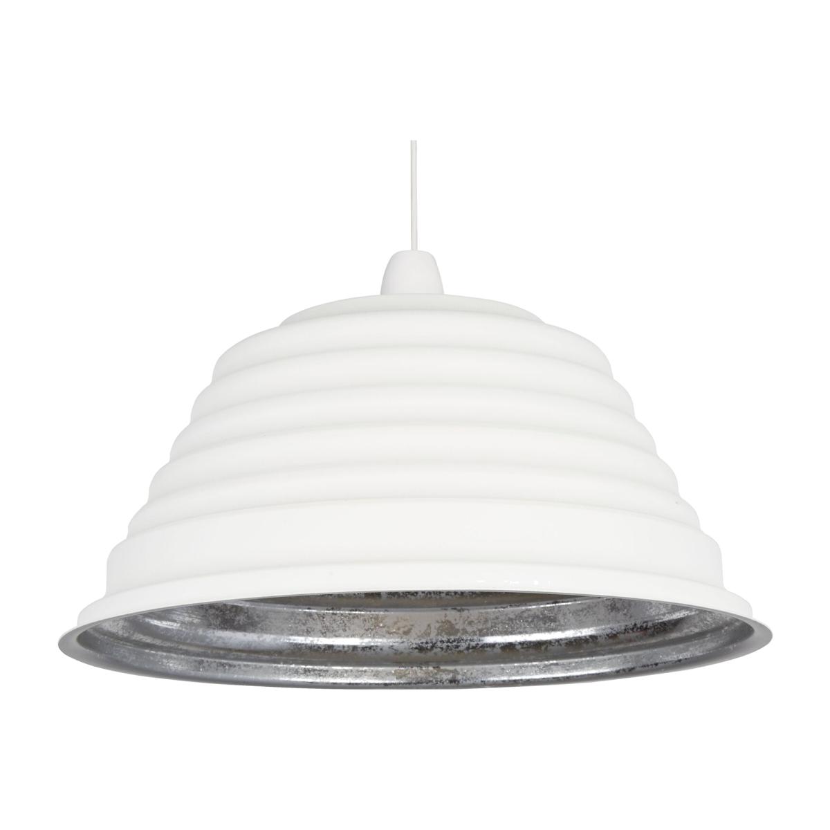 An on-trend twist on a traditional lamp shade. An Sanded White outer and metallic silver inner displaying an ambient light reflection.