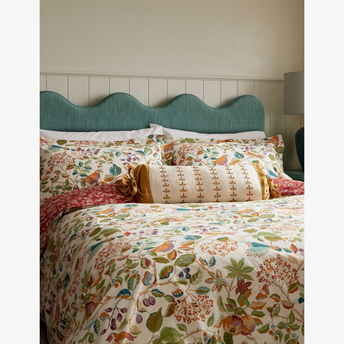 I love the Sanderson Birds & Berries Bolster Cushion in gold mix for adding an elegant touch to both traditional and country-style interiors. Its rich pattern and colour palette bring warmth and a hint of luxury, making it a versatile accent for sofas or beds. It works particularly well layered against textured throws or tucked behind larger cushions, enhancing a cosy yet refined look. For practical styling, consider pairing it with neutral or complementary colours to let the pattern stand out, and place it where it can be easily seen to maximise its decorative impact. It's a stylish addition that effortlessly elevates a classic or eclectic scheme.