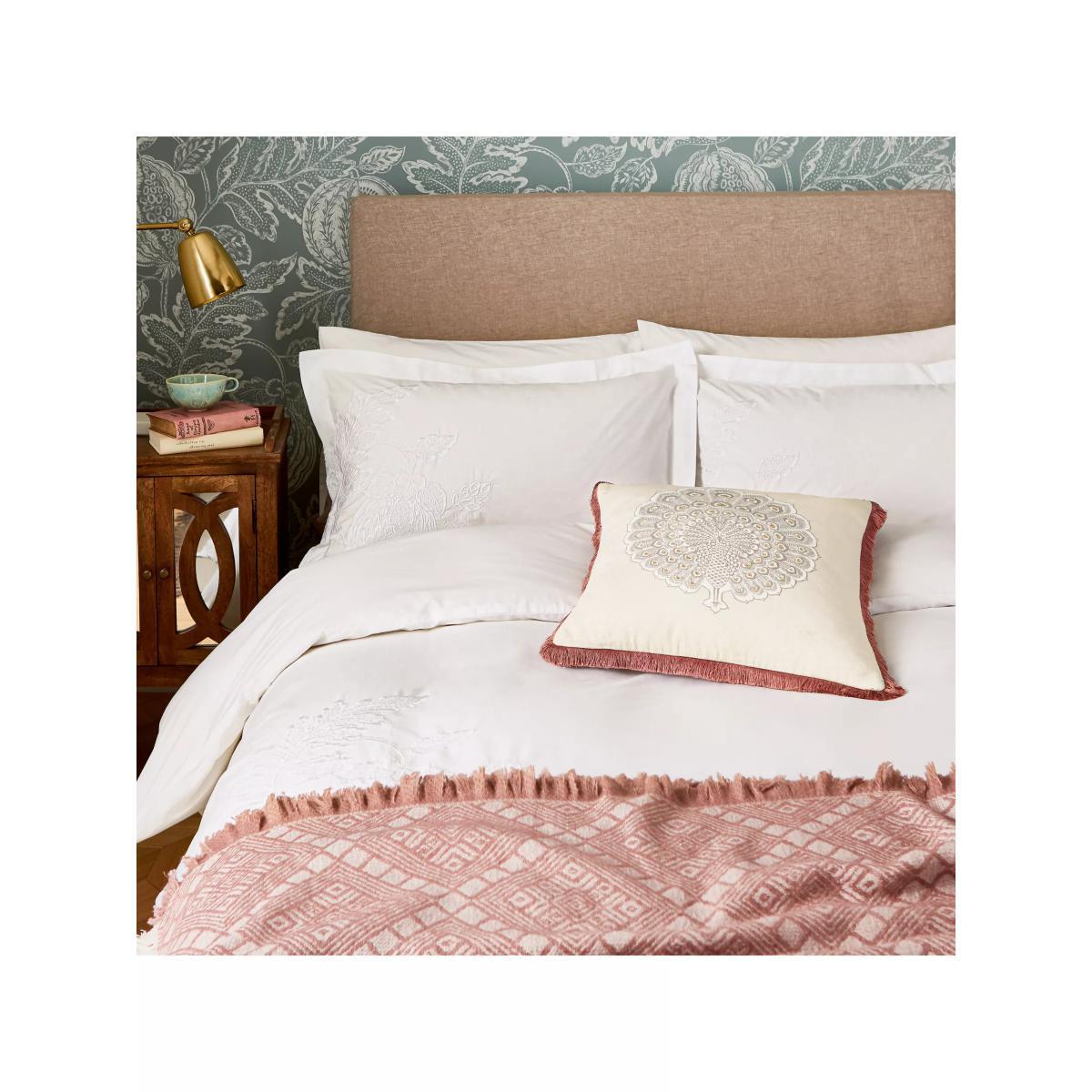 Create a relaxing bedroom scheme with the beautifully soft colours of this standout Sanderson design. This 100% cotton sateen bedding displays glorious stylised melons and intricate swirling leaves, with an all-over leaf design on the reverse and a velvet piped edging. The naturally breathable fabric helps keep you cool and comfortable throughout the night. Please note that duvet covers and pillowcases are sold separately and not in sets. Have you thought about sheeting? Shop. Bedding sizes To fit duvet/pillow size (cm) Oxford pillowcase, L75 x W50cm (excluding trim) Double duvet cover, L200 x W200cm King duvet cover, L220 x W225cm Super king duvet cover, L220 x W260cm