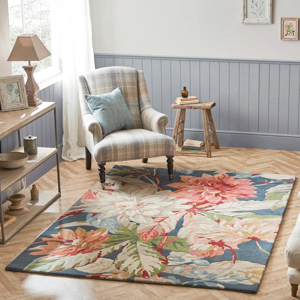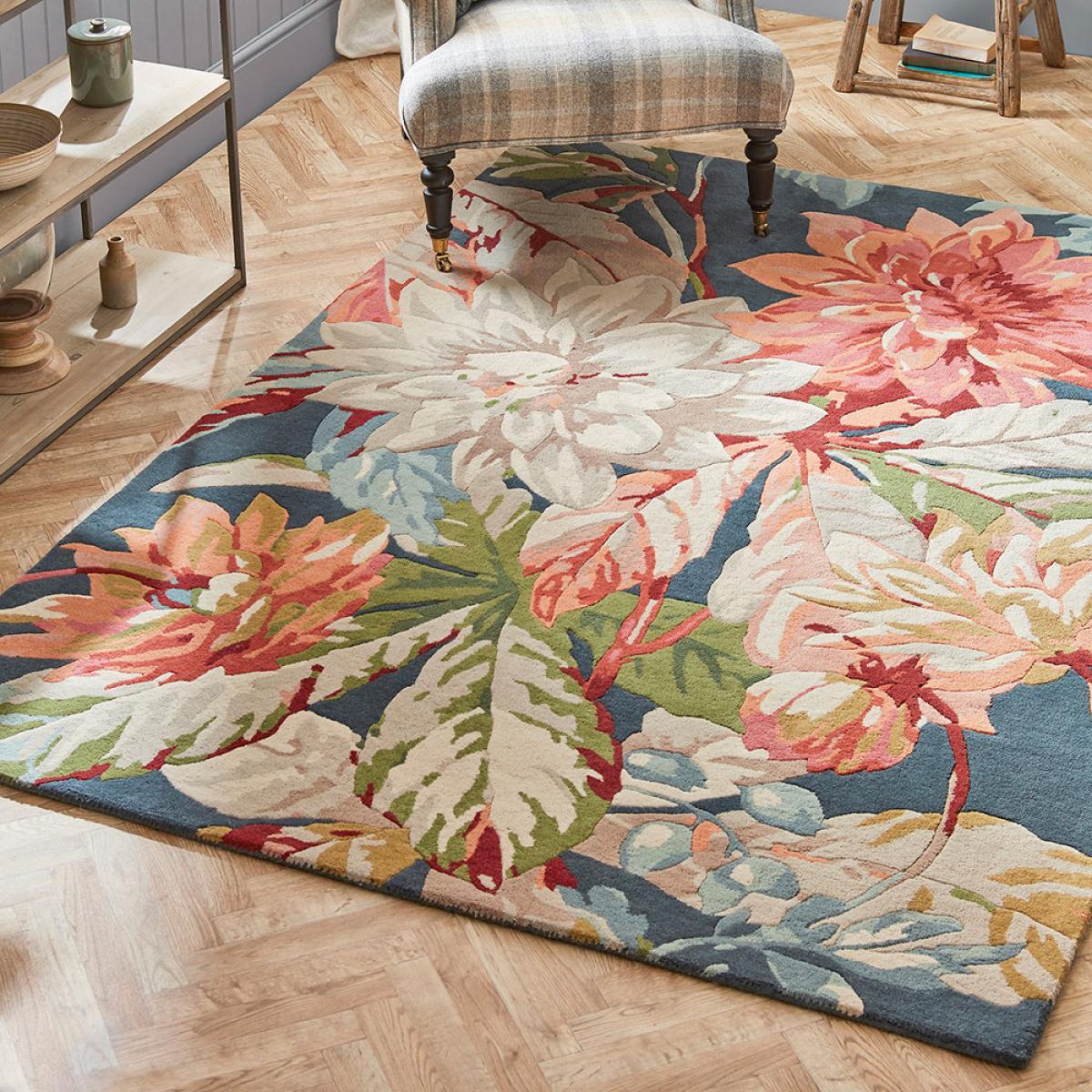 Bring some brilliant blooms into your home with this Dahlia & Rose rug from Sanderson. Expertly hand-tufted and made from pure new wool, this rug is bursting with beautiful dahlias & rosehips in cream and pink tones against a blue backdrop.