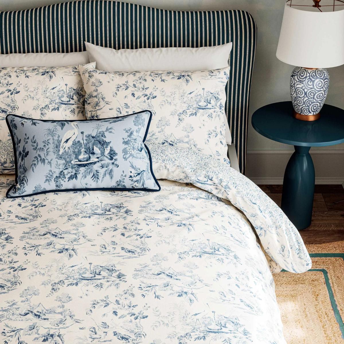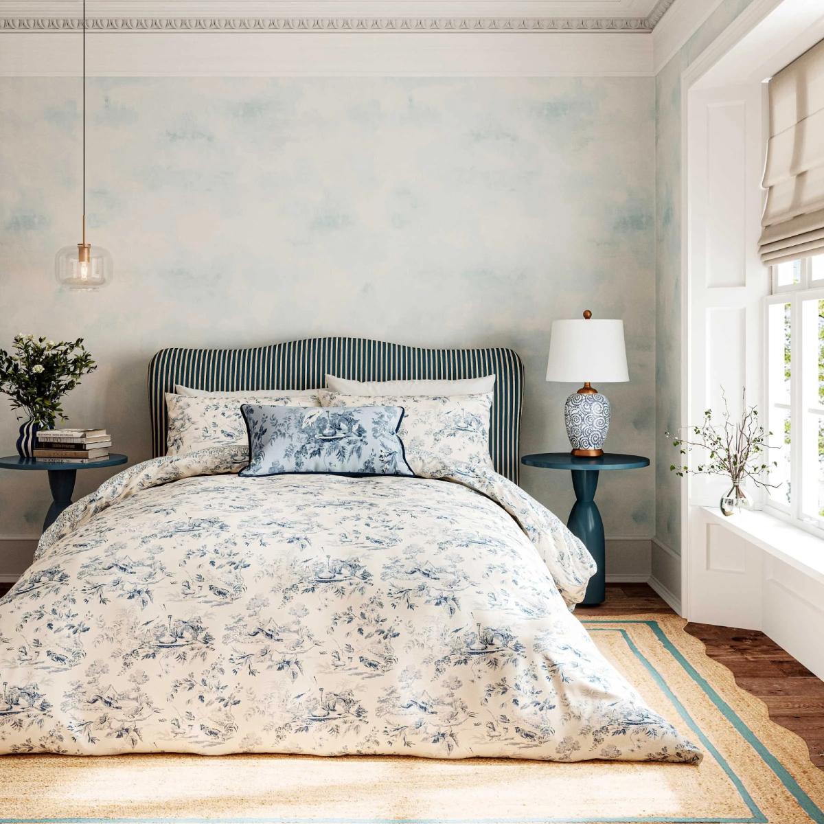 The Sanderson Options Aesop’s Fables toile design beautifully captures cherished scenes from Aesop’s timeless stories. Originally sourced from a 19th-century pattern found in Mulhouse, France, this design lends a touch of historical elegance. In bedding, the print exudes a restful and soothing charm with its sweet French Rose colorway. Complementing this, the reverse side features a classic trailing willow motif on a small, delicate scale. The duvet set, crafted from 100% cotton, includes matching standard pillowcases adorned with the Aesop’s Fables design, creating a harmonious and elegant look for your bedroom. Features 100% BCI Cotton Machine Washable Single Duvet Includes Single Pillowcase Double, King and Superking Size Duvet Includes Pair of Pillowcases All screens vary in colour reproduction and whilst every effort has been made to display the colour as accurately as possible it is for guidance only.