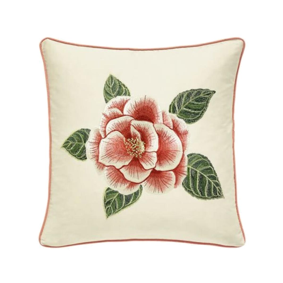 This Sanderson Options Christabel Cushion features an intricately embroidered camellia bloom on a pale ivory background with contrasting piping. This filled cushion coordinates perfectly with duvet sets in the Sanderson Options Christabel collection. *Cushion size: 40cm x 40cm. *Made from 100 cotton sateen All screens vary in colour reproduction and whilst every effort has been made to display the colour as accurately as possible it is for guidance only.
