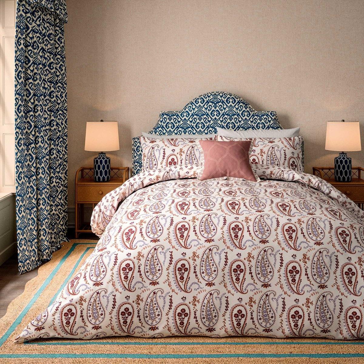 The Sanderson Options Jamilia Duvet Set - Pink brings a soft touch of elegance to your bedroom. Classic paisley format in blush pink tones are set against a fresh backdrop, creating a light and calming atmosphere. Crafted from a smooth, 100% BCI Cotton Percaled, this set offers comfort and practicality in equal measure. Complete with matching pillowcases, the Jamilia design adds a timeless charm that works beautifully in both classic and contemporary interiors. Features:. The reverse features a floral print. Standard pillowcases match the duvet to complete the set. 100% BCI Cotton Percale 200 thread count Care Instructions: Machine Washable All screens vary in colour reproduction and whilst every effort has been made to display the colour as accurately as possible it is for guidance only.