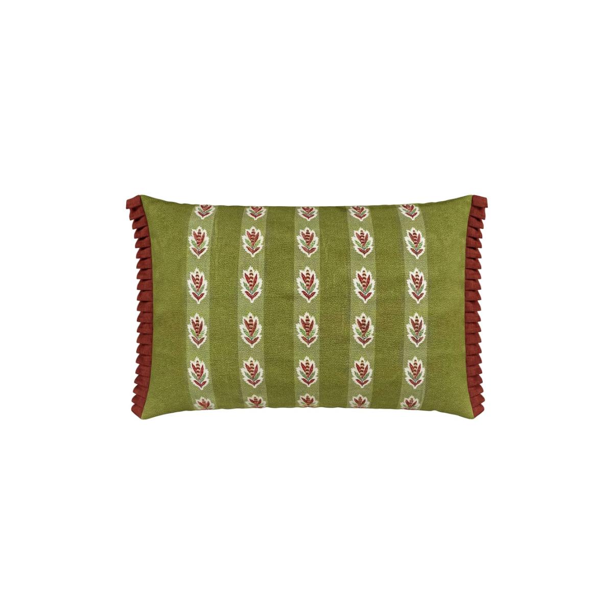 Bring the outdoors in with this garden-inspired cushion by Sanderson. The feather-filled design has a woven pure cotton cover featuring five vertical rows of flowers, framed by a contrast pleated edge on either side. This large rectangular style is complete with a plain reverse.