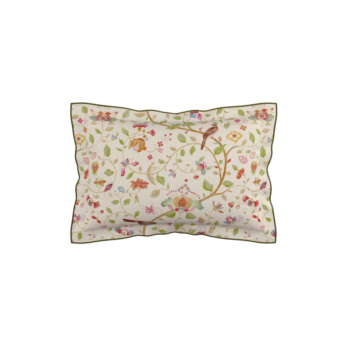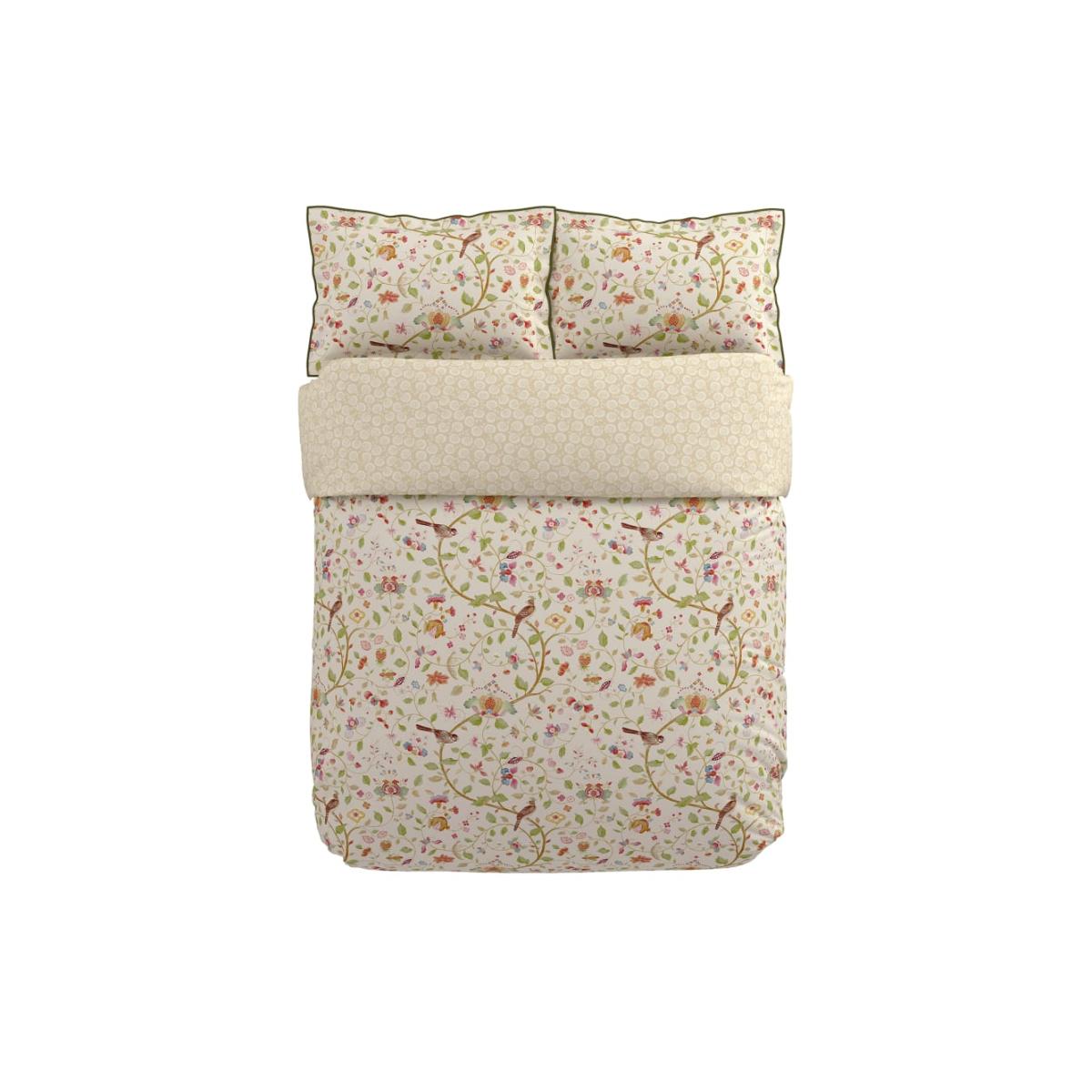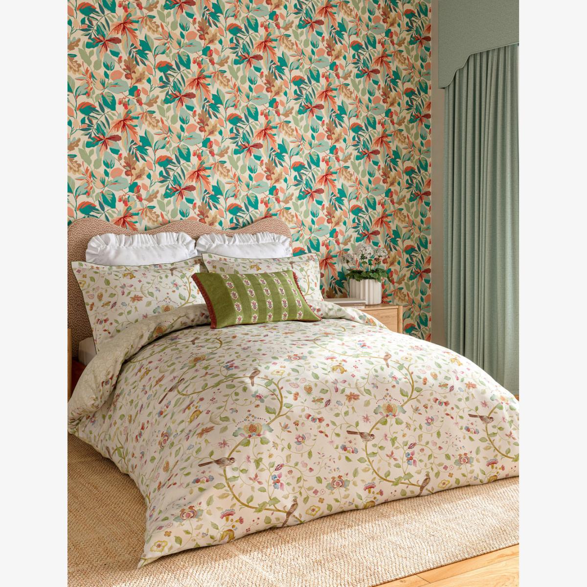 Refresh your sleeping space with this floral print bedding from Sanderson. The pure cotton set has a smooth sateen weave and a luxurious 200 thread count. It's finished with fine cord piping and smart button fastenings. The design features birds, grasshoppers and beetles, all sitting among trailing flowers.