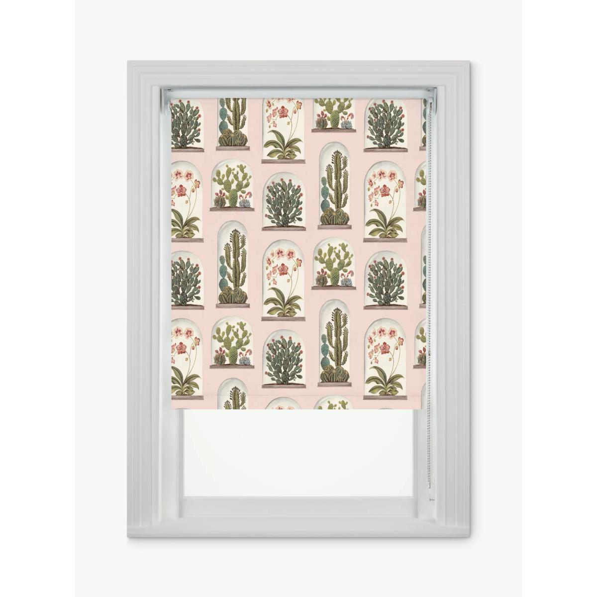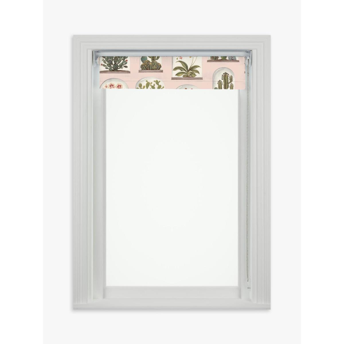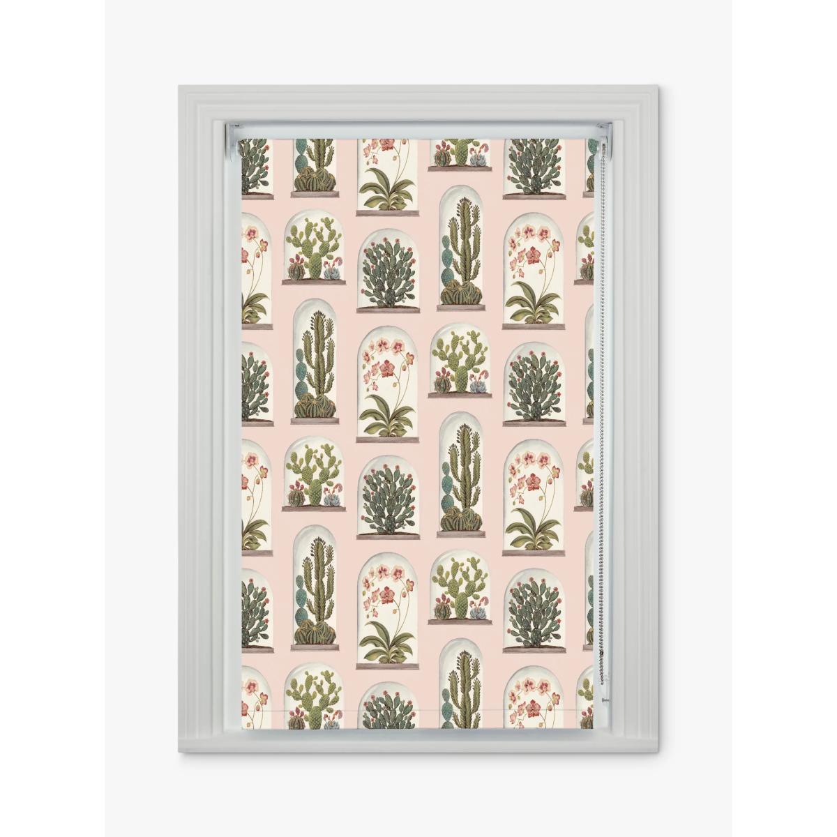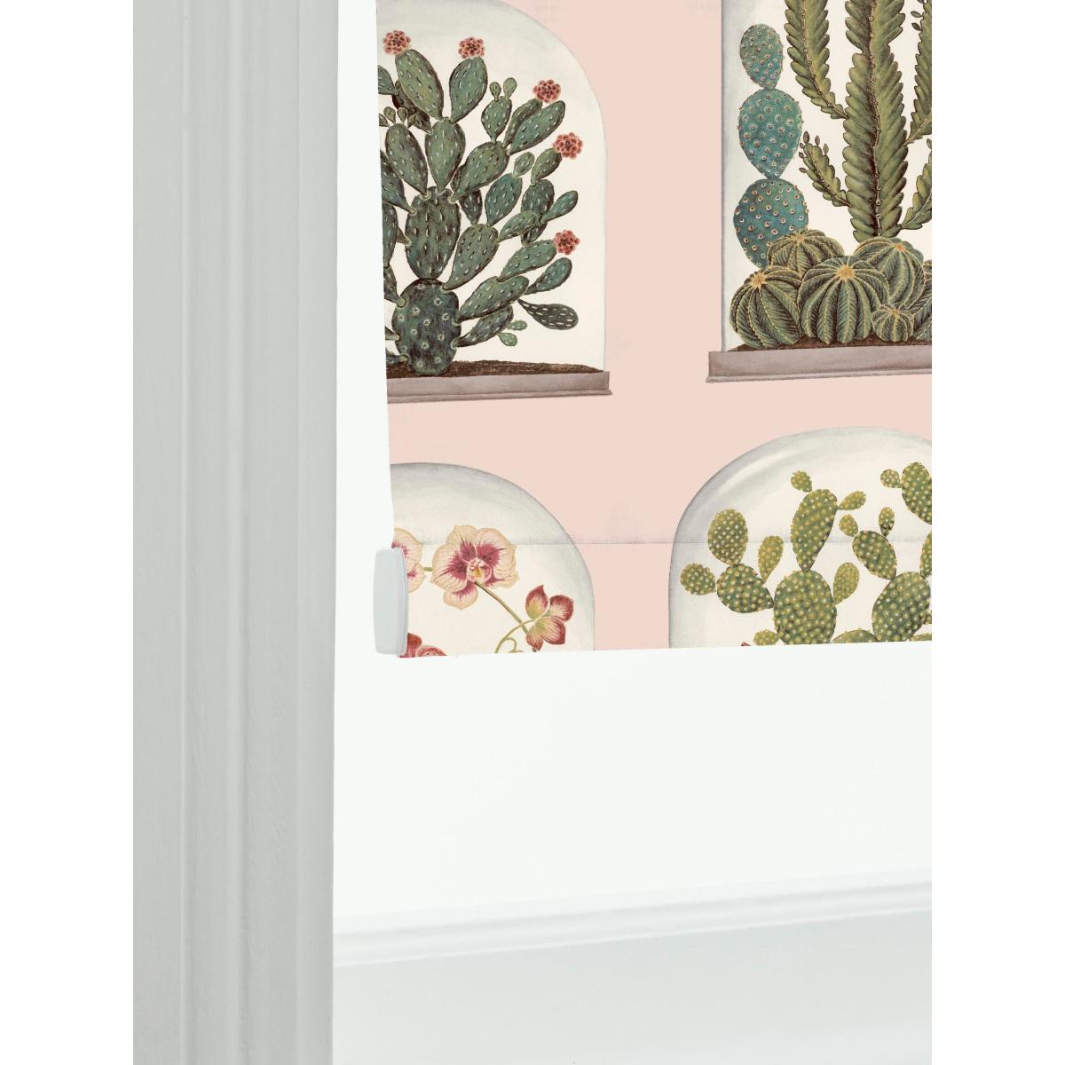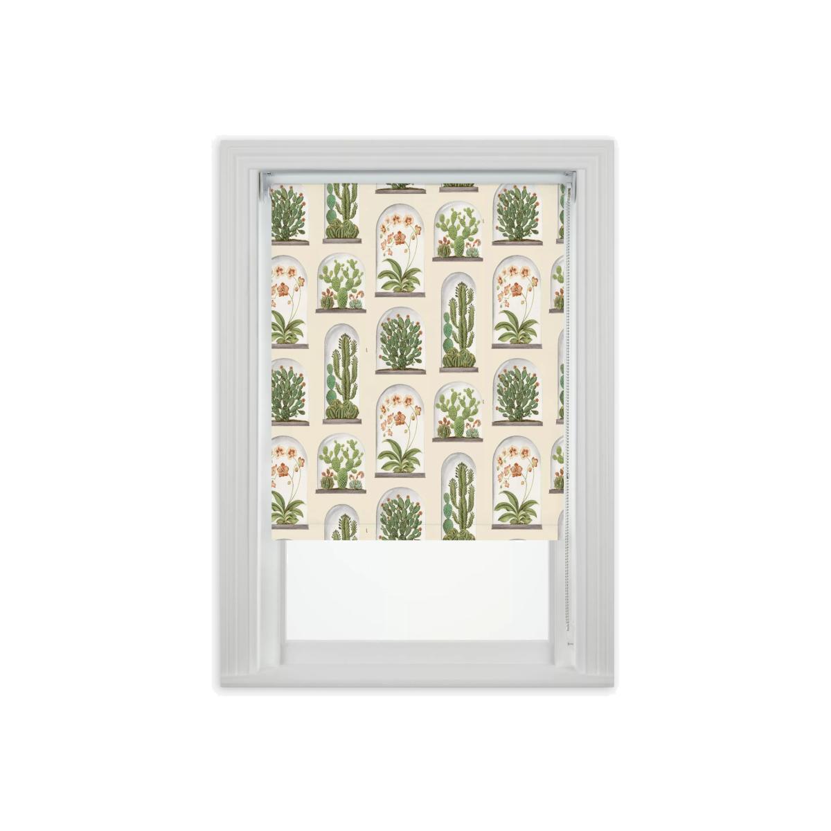 Made according to your requirements our Digital Print range of roller blinds lets you create a blind to fit your personal requirements using well-known branded designs. From Sanderson, Terrariums is a fun and unique design depicting cactus and orchid plants encapsulated in glass-domed terrariums. Key features: Can be installed either inside or outside the window recess, to the wall or ceiling Can be standard or reverse rolled. Standard gives a close fit to the window, helping eliminate light. Reverse brings the material forward over the roll which conceals it and creates space between the blind and window Includes a metal chain mechanism which can be attached on the left or right-hand side, without affecting the way the blind is rolled Supplied with easy-fit universal brackets Includes safety devices to keep children safe Blackout or daylight? Your first choice is whether you'd like a blackout or daylight blind; this blind can be made as either. A blackout blind eliminates light and gives you 100% privacy making it a good choice for bedrooms as they help you get a good night's sleep, blocking out light pollution as well as the early-rising sun in the spring and summer months. As the blackout lining blocks out sunlight it also helps keep your room cool as well as dark. But in the winter months the 3 layer blackout coating adds an extra layer of insulation, giving the blind thermal properties which aren't found on non-blackout blinds. It protects against both heat loss and heat gain, regulating the temperature of your room so you're kept warm in winter and cool in summer. The final benefit of a blackout blind is that it's moisture-resistant, so is suitable for kitchens and bathrooms. A daylight blind on the other hand still offers some privacy without blocking out all the light. They're a good option for rooms like the lounge or home office where you just need to stop some of the sun's glare through the day. Size restrictions: Minimum size: W40 x Drop 40cm Maximum size: W280 x Drop 350cm Child safety For safety, we recommend that you move beds, cots and furniture away from any window fitted with a blind that has a side control mechanism, even with a safety device in place. Your blind will come with a double-breakaway child safety device on the chain. This is designed to come apart when too much pressure is applied. You can simply reconnect the chain should this happen. If your measurements don't allow for a breakaway chain we'll include a P-clip with your order instead. The clip allows you to safely secure the chain to your wall, which you can see in the above images. If this is the case for your order we'll always call you before fulfilling your order so you're aware. Please make sure you understand the information on our Child Safety Hub before placing your order. Ready to place your order, or looking for more advice? If you're interested in our Digital Print blinds and are ready to place your order, or need a little more advice, there are a few ways we can help. Firstly, come into any of our shops and speak to a Partner. Alternatively, we can come to you as we're also now offering in-home appointments. Finally, you can book a virtual appointment and speak to one of our estimators on a video or phone call. They'll provide a combination of practical measuring, design and technical advice. Find out more about our services and book an appointment here