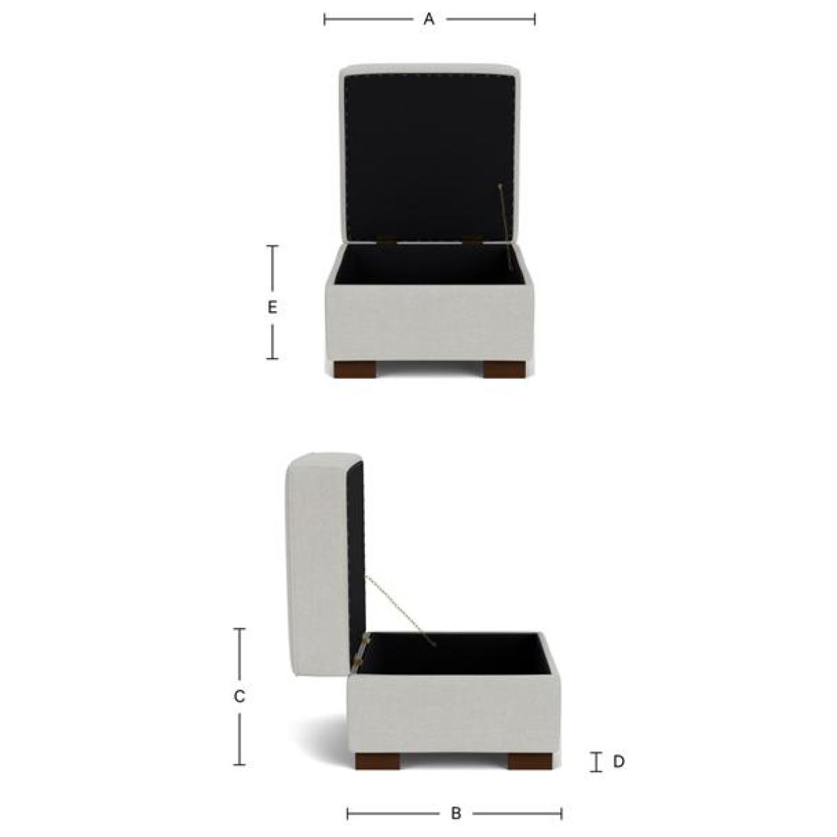 The Sandhurst small storage ottoman is the ideal companion to your Sandhurst sofa, serving as both stylish extra seating and a useful storage compartment. Not only is it great for you to put your feet up on, it provides room for blankets, pillows, magazines and anything else you'd like to keep hidden from view! Whether you'd like to match your ottoman to your sofa fabric or change it up and choose something new, we have a range of extensive leathers and fabrics for you to choose from. With a hardwood frame and luxury foam with a fibre wrap, this ottoman has been built by expert craftspeople in the UK. External (cm): - Width (A) = 51 - Depth (B) = 51 - Height (C) = 32