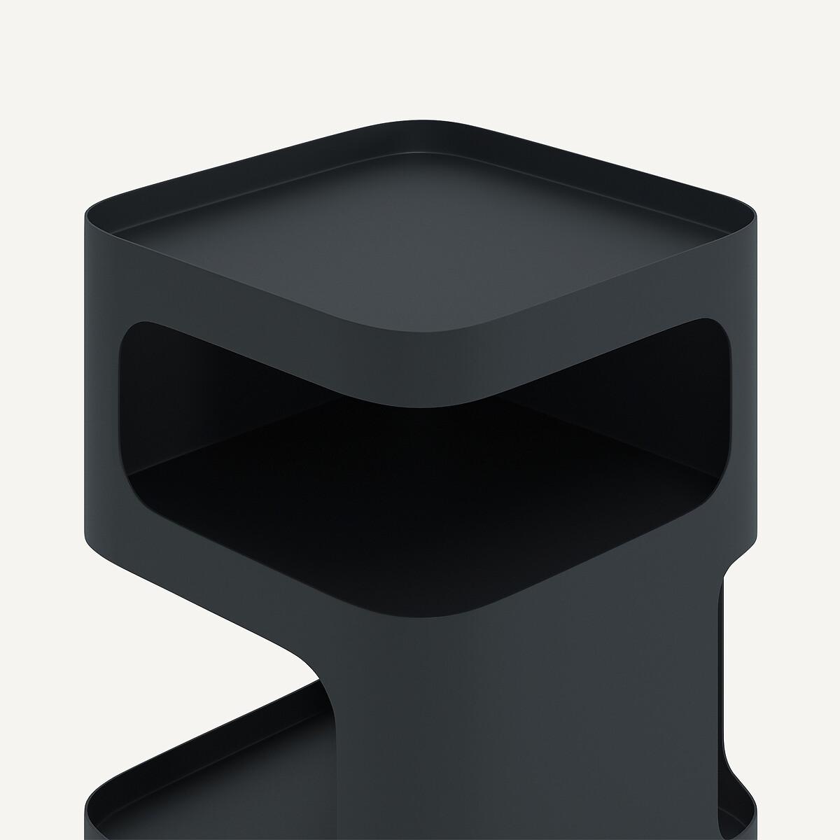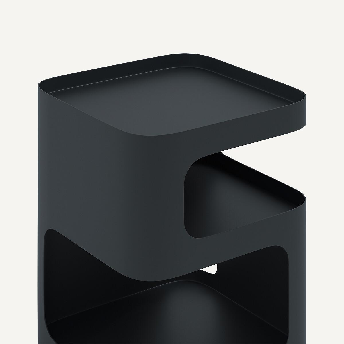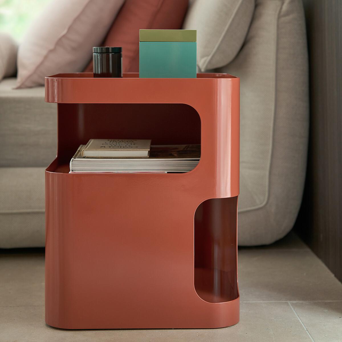 With its contemporary lines and geometric shape, the Sandoval metal bedside table has two opposing storage compartments. Product Details • Epoxy painted steel • 2 storage compartmentsDimensions. Total • Width: 40cm • Height: 50cm • Depth: 40cm. Usable space Top compartment • Width: 39.5cm • Height: 19cm • Depth: 39.5cm. Lower compartment • Width: 39.5cm • Height: 25cm • Depth: 39.5cm • Sold pre-assembled. Parcel Dimensions1 parcel • L47 x H59 x D47cm, 23kg