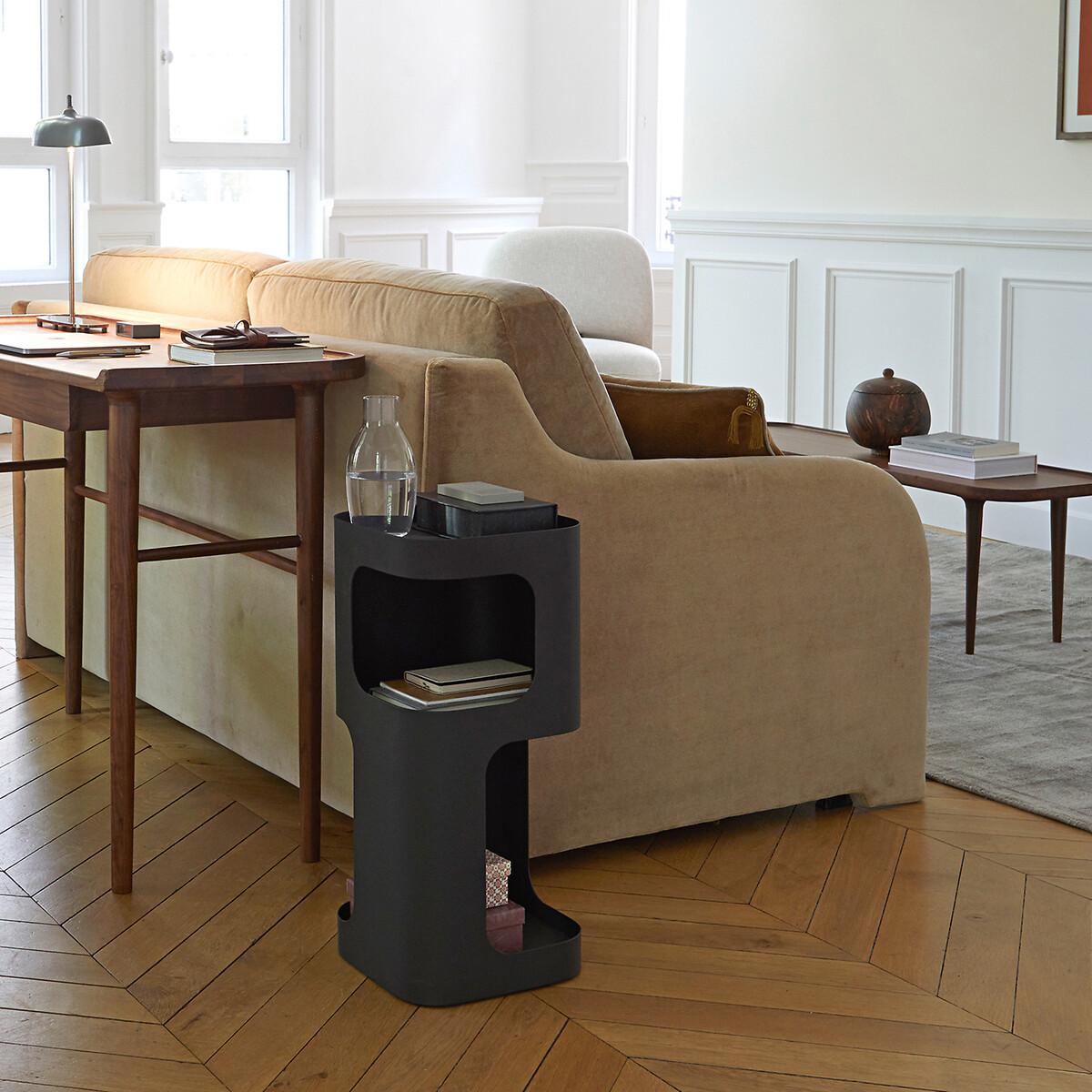 The XS Sandoval bedside table. A contemporary design in a geometric shape with 2 opposing compartments. Product Details • In matte painted steel • Adjustable feetDimensions. Overall • Width 27cm • Height 58cm • Depth 27cm. Usable space • Top shelf : L17 x H16 x D17cm • Bottom recess : L17 x H26 x D10cmDelivery:. Sold pre-assembled. Available for home delivery. Dimensions and weight of parcel • L72 x H31 x D31cm • 11kg.
