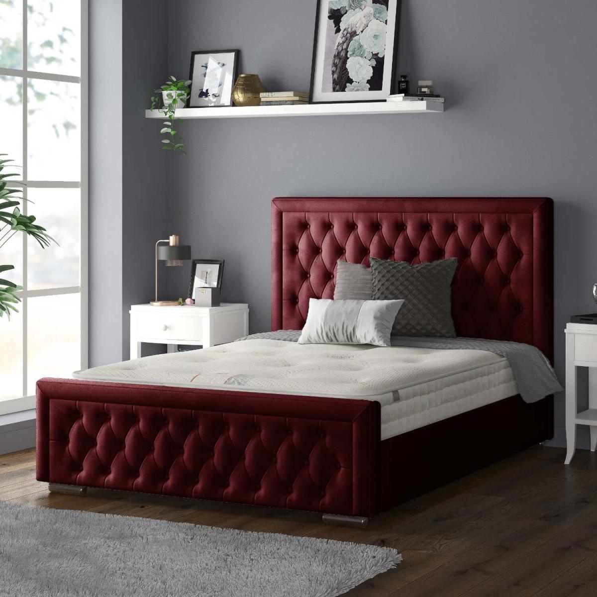 Sandringham Bordered Chesterfield Plush Velvet Bed Frame with Diamonds - Burgundy / King