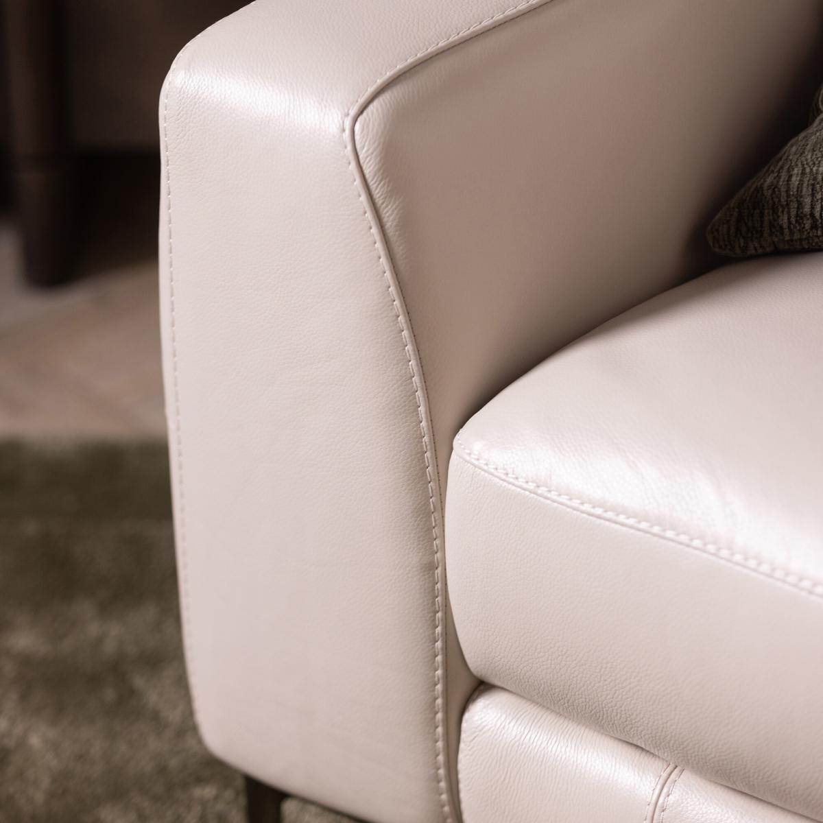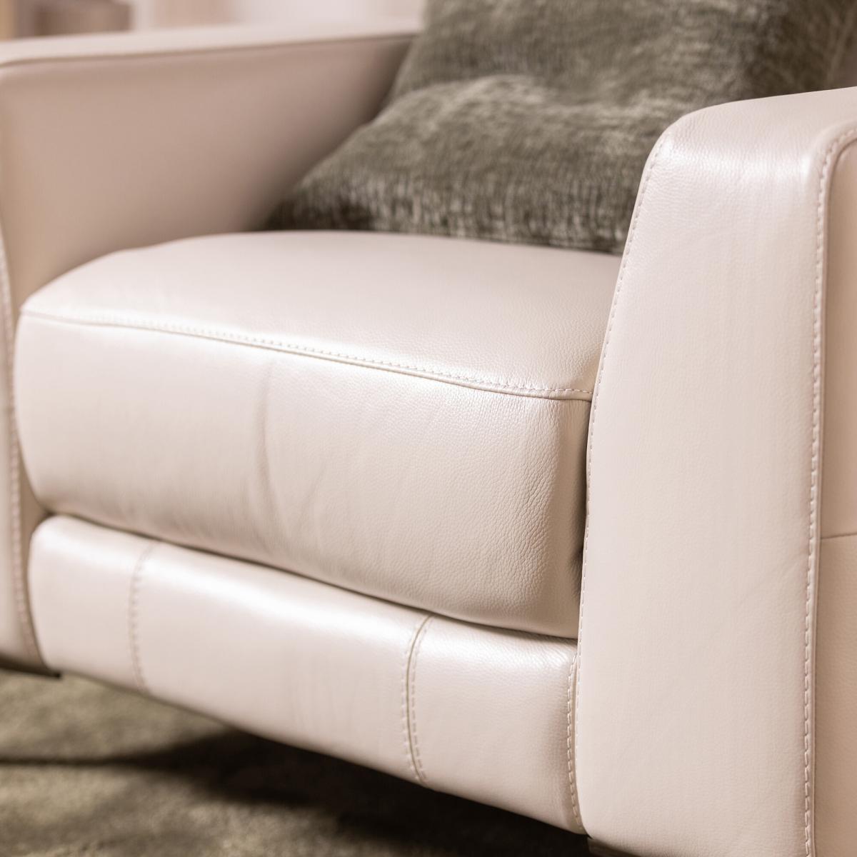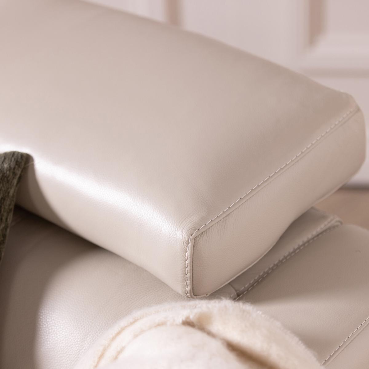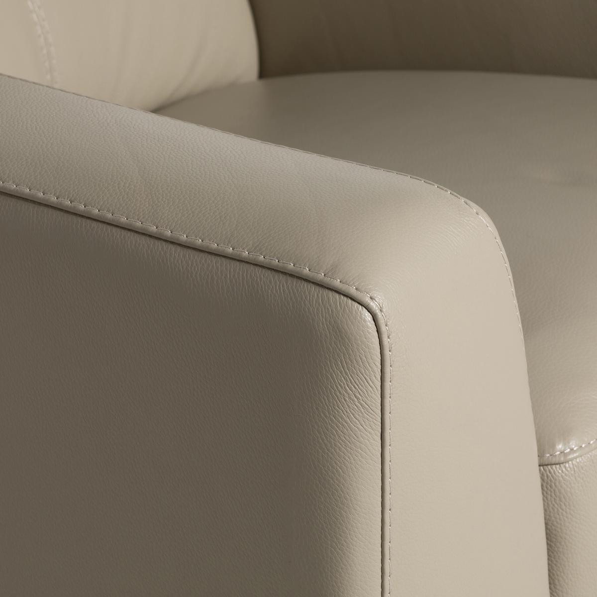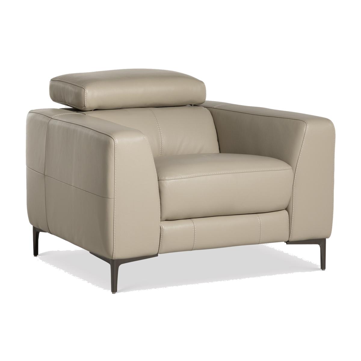 Discover modern comfort with this Sandro Light Grey Leather Recliner Armchair, crafted from premium genuine leather for lasting durability and a smooth, elegant finish. Plush cushioning, wide armrests, and an adjustable headrest deliver exceptional support, making it ideal for everyday relaxation. Sleek metal legs enhance its contemporary aesthetic, fitting seamlessly into modern living rooms, reading corners, or home offices. Designed for both luxury and practicality, this recliner offers long-term comfort, structural stability, and timeless style, elevating any space with refined sophistication. Its high-quality construction ensures dependable performance, while the soft leather surface resists wear to maintain its premium appearance.