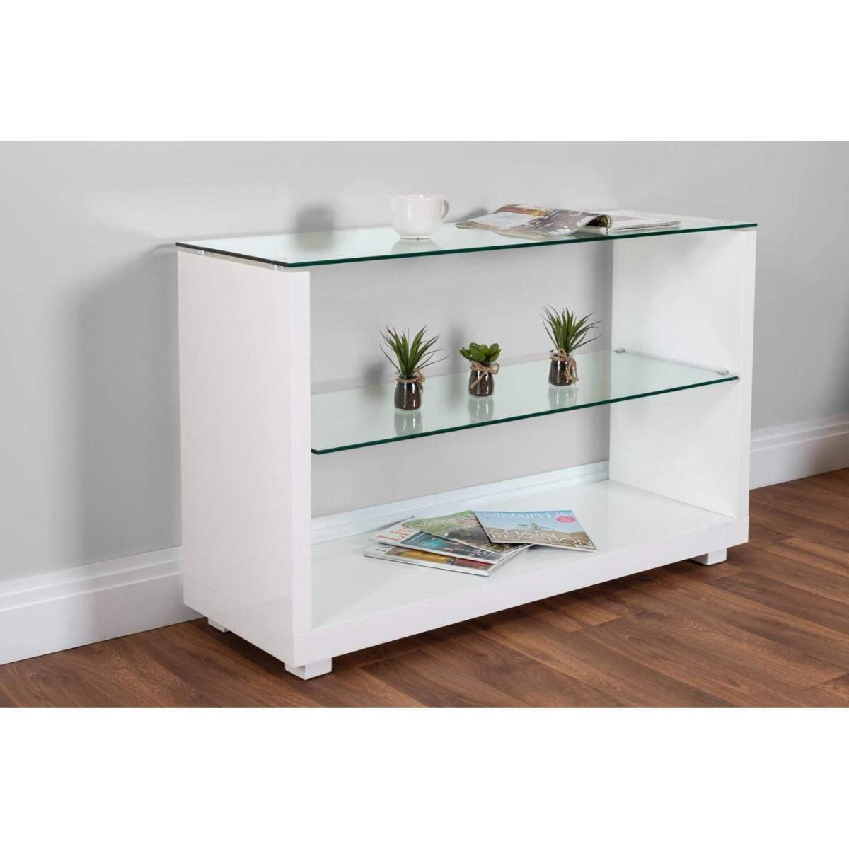 The Sandro console table is the perfect addition to any modern living space! It combines a stylish white high gloss frame with the clear tempered glass shelving to create a light and open look, whilst not compromising on style. Featuring a lower shelf the table is also very practical, offering plenty of storage space below the glass table top ideal for books and home accessories. This console table will be sure to add a modern, sophisticated look to any home and at such an unbeatable price the Sandro console table really is a must-have! Want the complete look Why not add the Sandro coffee and side table to complete this wonderful set!