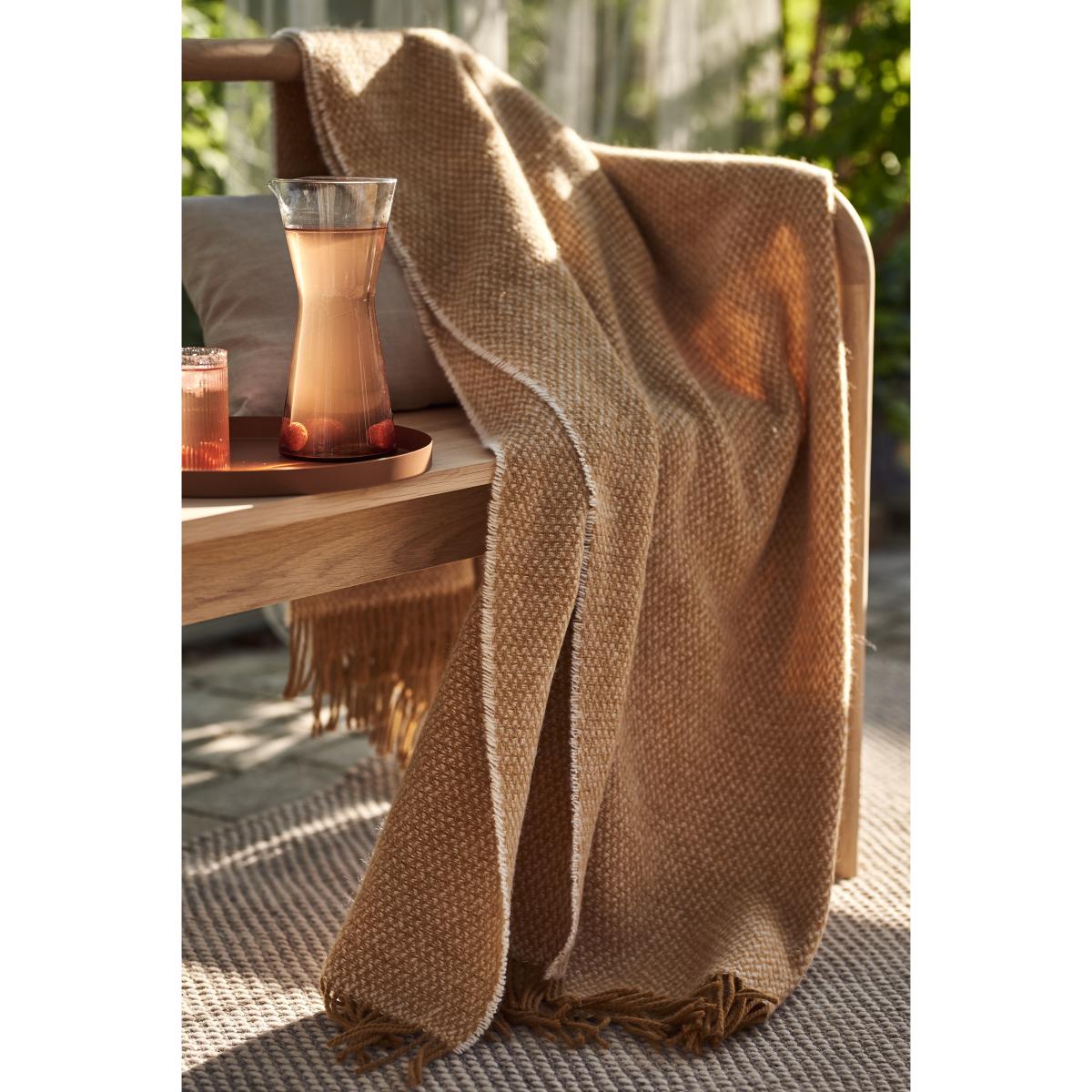 I love this throw for its warm, versatile hue that can add a pop of colour to neutral or muted interiors. Its mustard tone works particularly well in contemporary, Scandi, or rustic schemes, injecting a subtle vibrancy without overpowering the space. The wool fabric lends a cosy, tactile feel, making it perfect for layering on sofas or beds. Practical styling tips include draping it over the arm of a sofa for casual elegance or folding it neatly at the end of a bed for a tidy, inviting look. It’s also a great choice for adding warmth during the colder months or giving your space an extra layer of texture and colour with minimal effort.