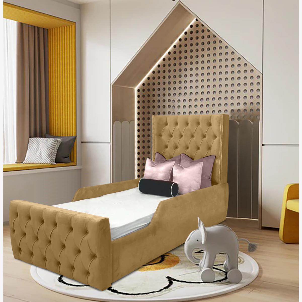 Sandy Kids Bed Gaslift Ottoman Plush Velvet with Safety Siderails - Beige / Double