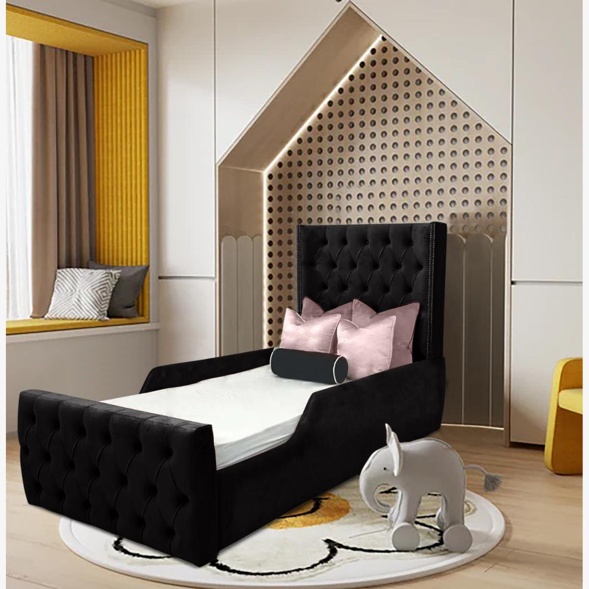 Sandy Kids Bed Plush Velvet with Safety Siderails - Black / Small Double