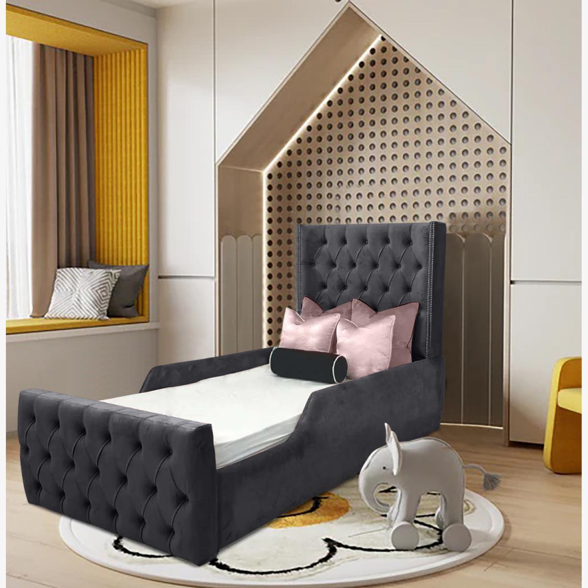 Sandy Kids Bed Plush Velvet with Safety Siderails - Steel / Single