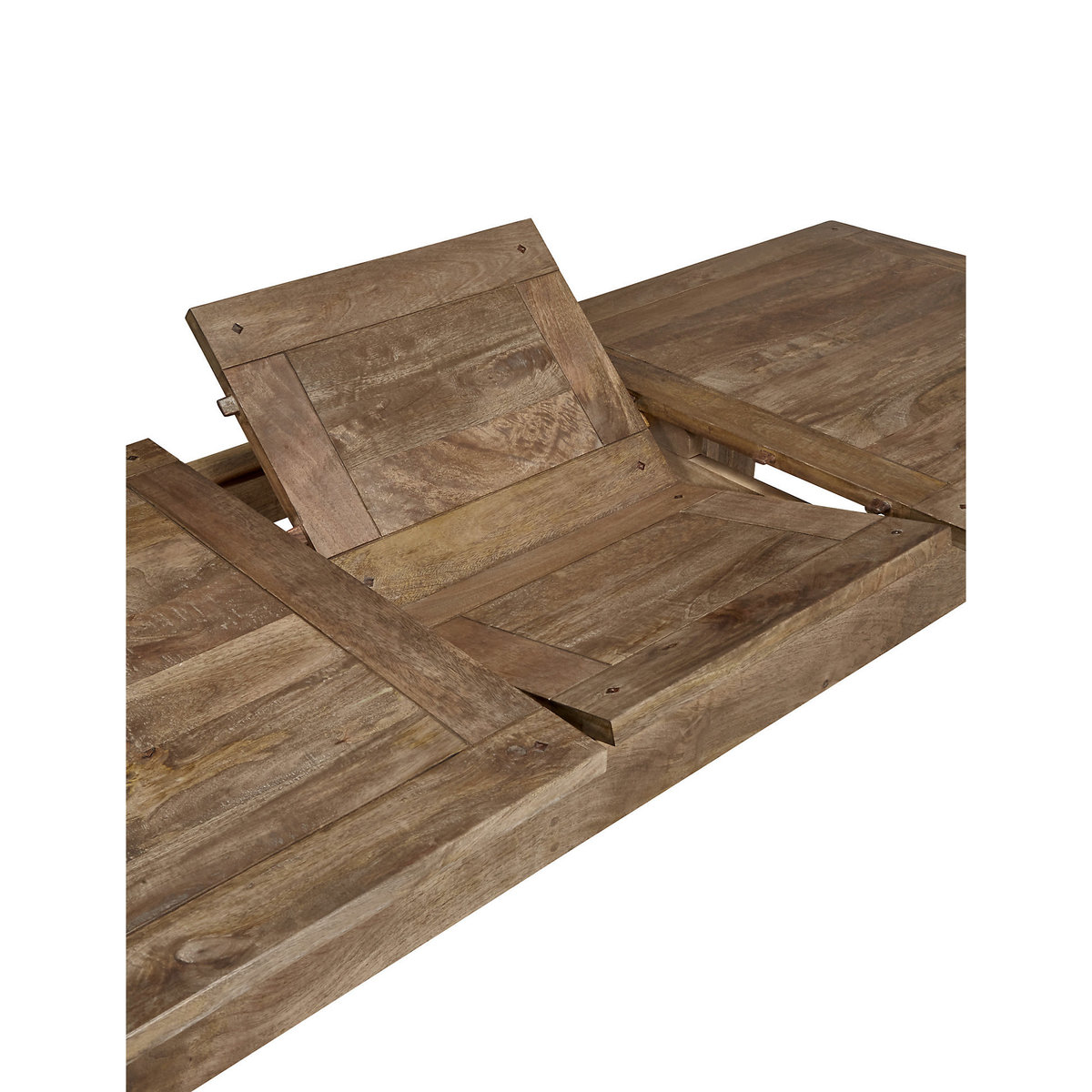 There's more than meets the eye with this charming Sanford dining table. Ideal for dinner parties, this extendable dining table provides extra space when you need it. Gorgeously rustic, it's crafted from sustainable mango wood for a sturdy feel, while a distressed finish complete with knots and peg joints offers a warm, homely look. Simple and understated, this robust dining table is a timeless addition to your dining space for that extra touch of charm.