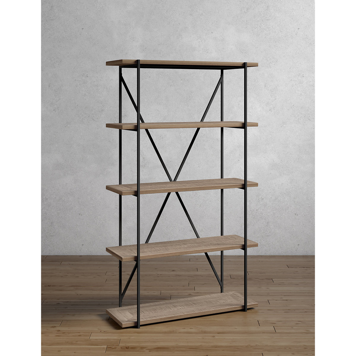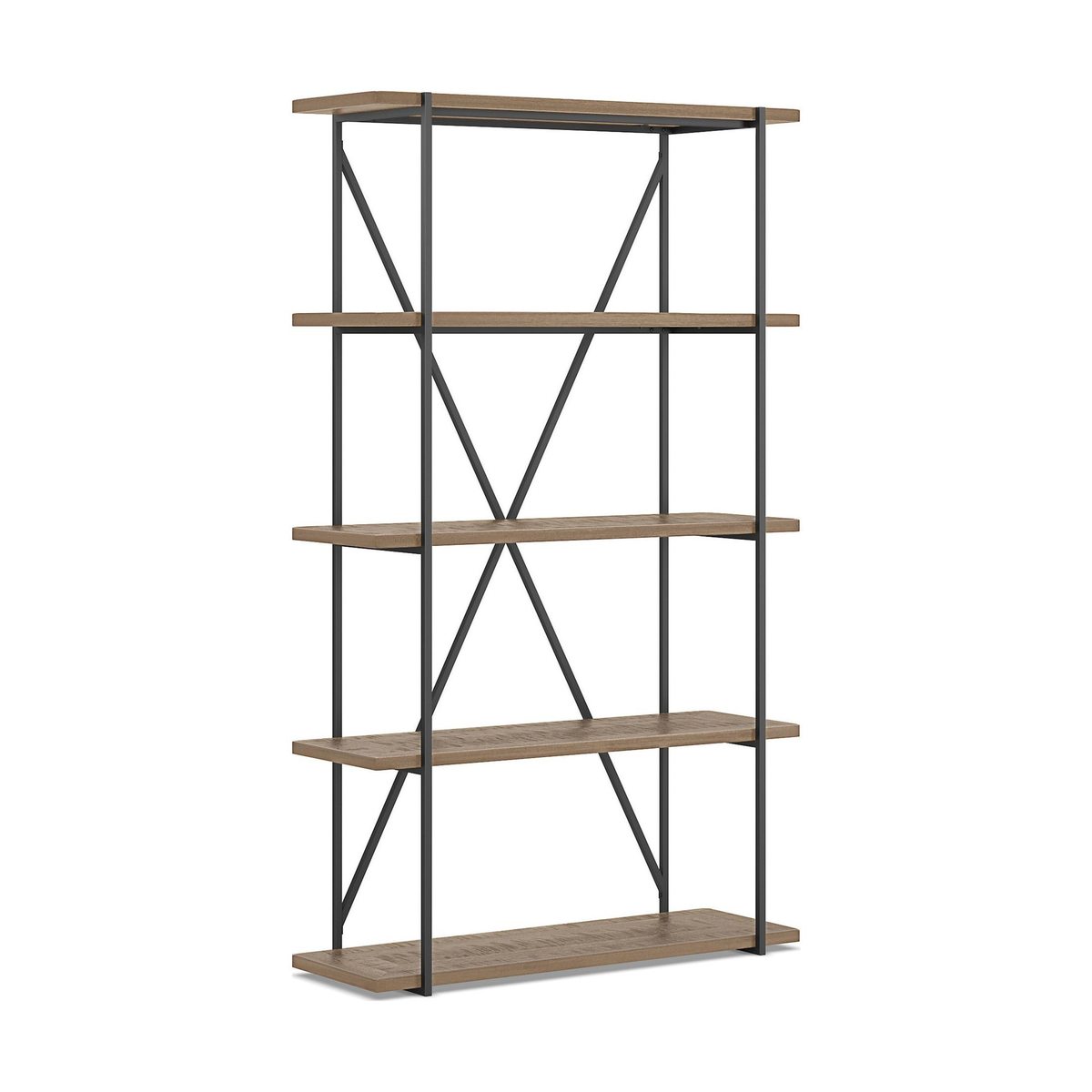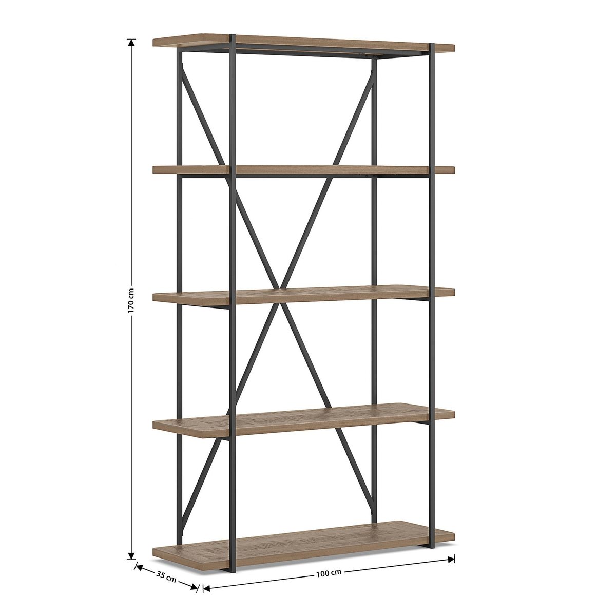 Flawlessly stylish, this Sanford bookcase offers contemporary shelving that fits perfectly in any modern space. Ideal for books, plants and other decorative items, this stunning minimalist bookcase is the ultimate in stylish storage space. We've carefully crafted this tall bookcase using sustainable mango wood that features knots with a distressed, weathered finish, while parquet surfaces combine with the metal frame for a contemporary finish that brings style and charm to any room in the home."}