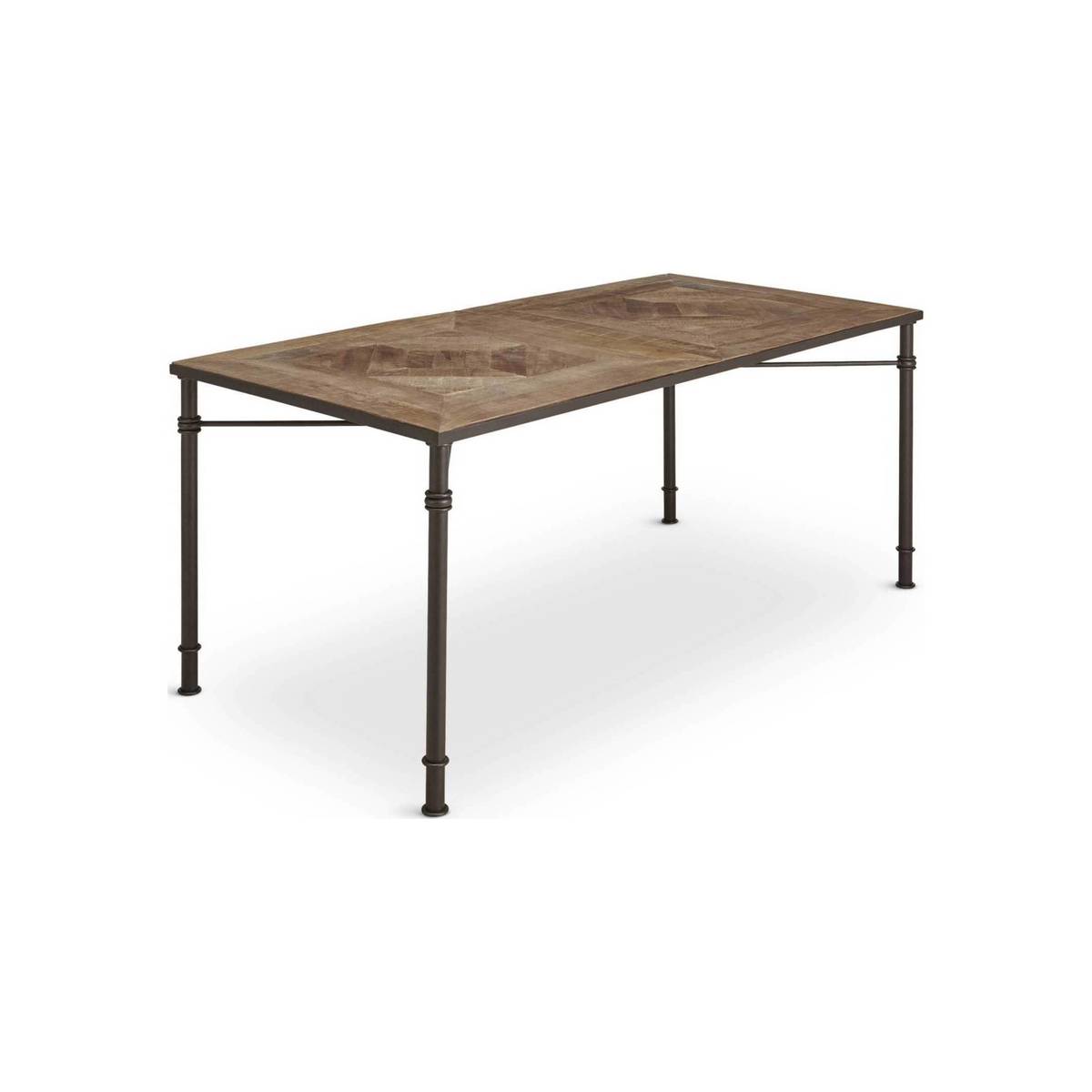 Update your dining space with this effortlessly stylish parquet dining table, perfect for entertaining and weeknight meals alike. We've carefully crafted this table from sturdy, sustainable mango wood featuring a distressed finish whose visible knots and natural colour changes give this piece a true sense of personality. Combine this with the simple designs on the slim metal frame and you have a must-have dining table for those seeking a contemporary industrial feel around the home.