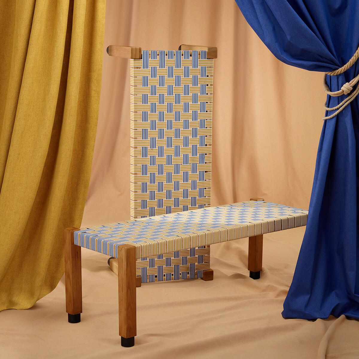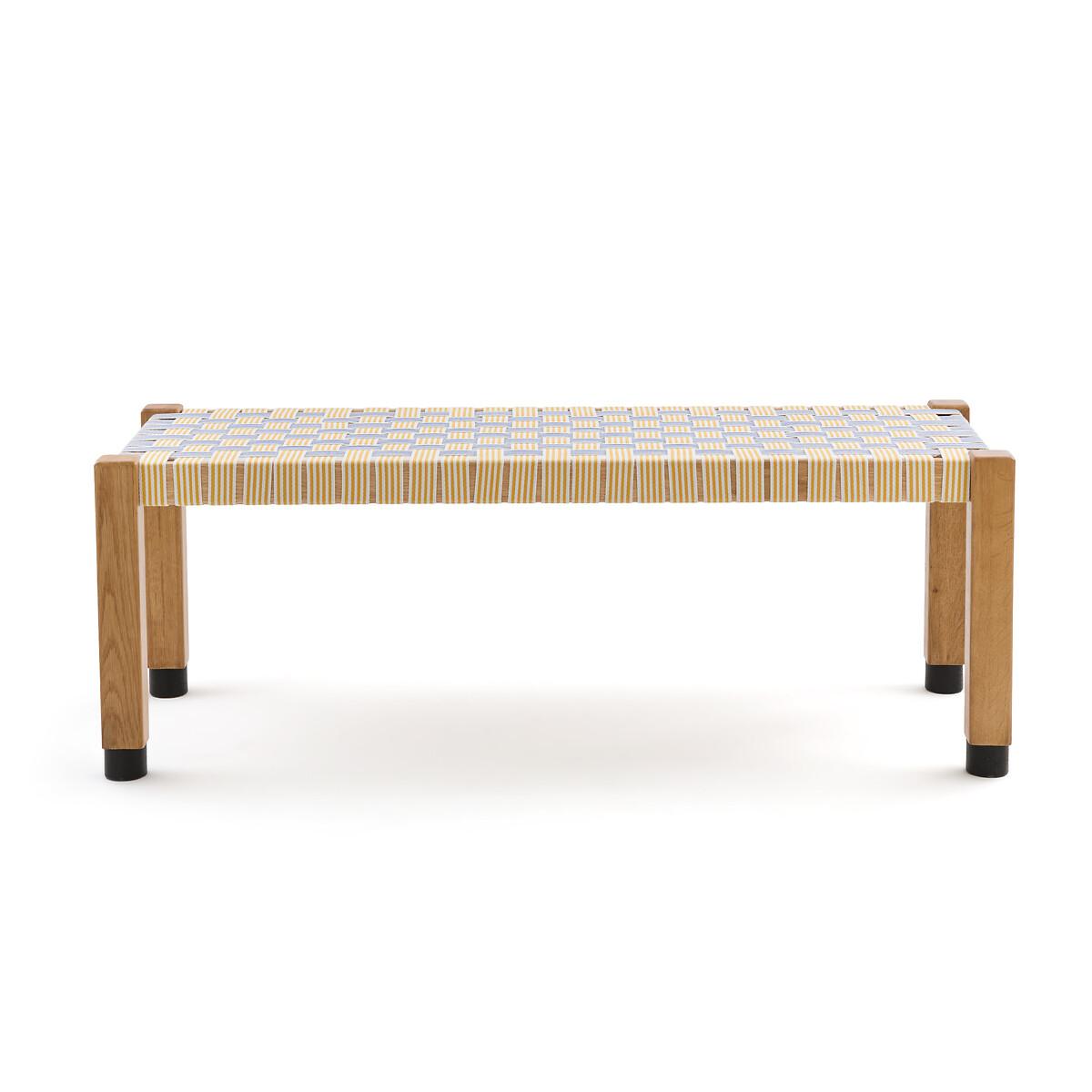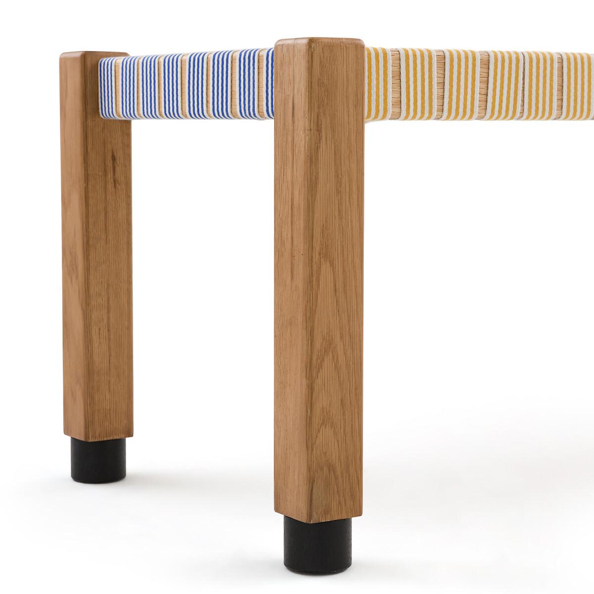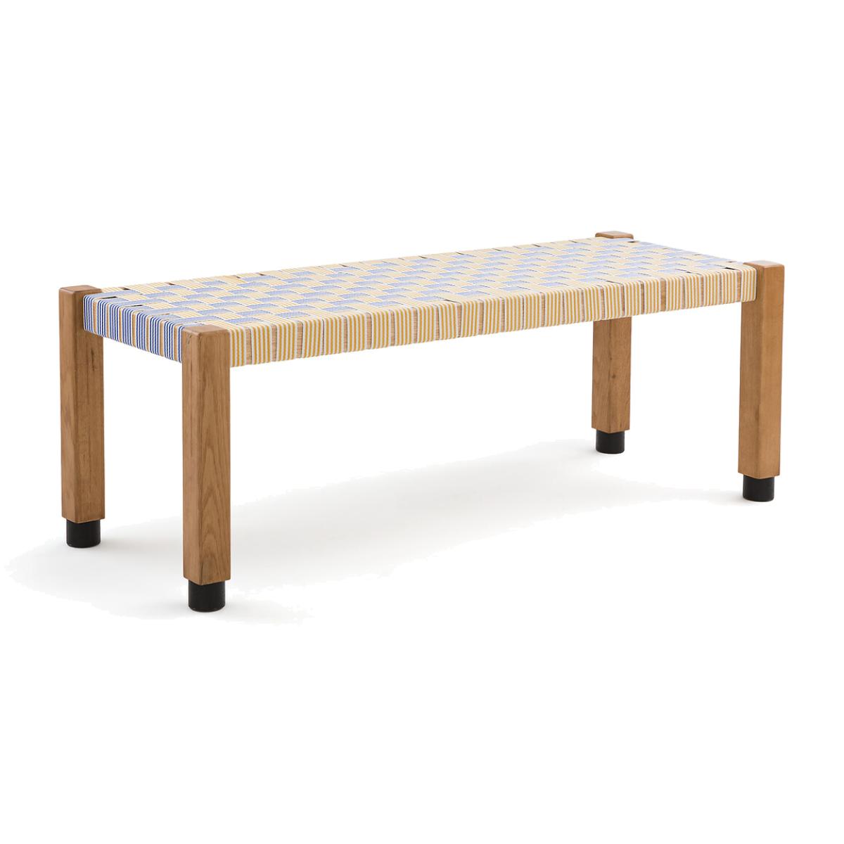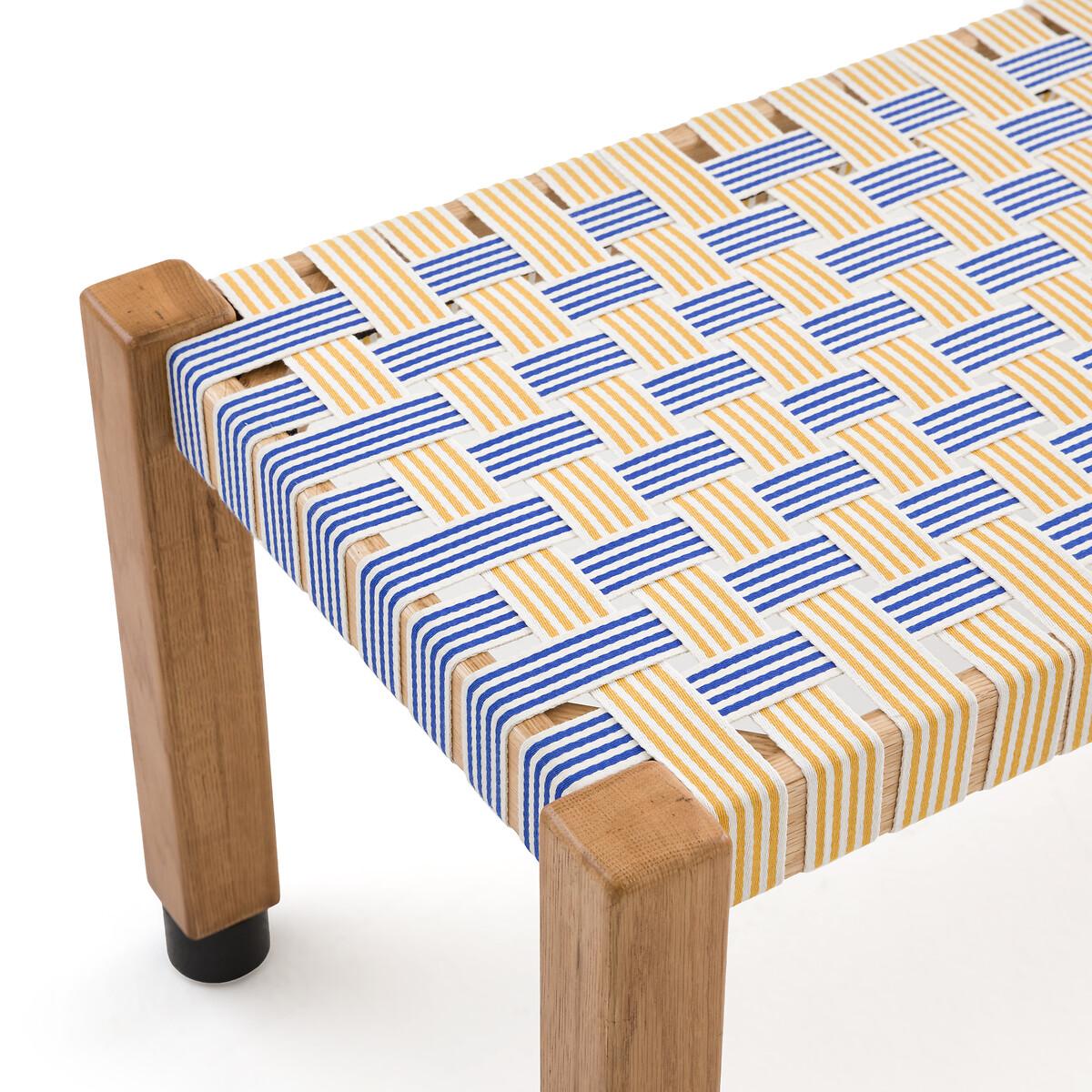 Eclectic and sophisticated, Mama Shelter X La Redoute Interiors is the result of the collaboration between the 2 brands' designers. A limited edition with limitless inspiration. In solid oak and braided straps, this bench combines simplicity and comfort. Its two-tone striped braiding will brighten up all interiors (and exteriors). Let yourself be surprised by a tribe of design objects, inspiring and with a unique personality. Product Details • Structure in solid oak with natural stain • End of legs in black stained solid oak • FSC® certified wood • Seat made from 100% polyester straps • Felt pads on feet. Dimensions • Width: 127.8cm • Height: 45.7cm • Depth: 48.2cm • Weight: 8.65kgDelivery:. This product requires assembly. Available for home delivery. • WOOD FROM SUSTAINABLY MANAGED FORESTS. FSC® certified wood comes from forests that are environmentally, socially and economically well managed. Parcel dimensions and weight1 parcel • L132 x H13.5 x D52cm. 10.2kg