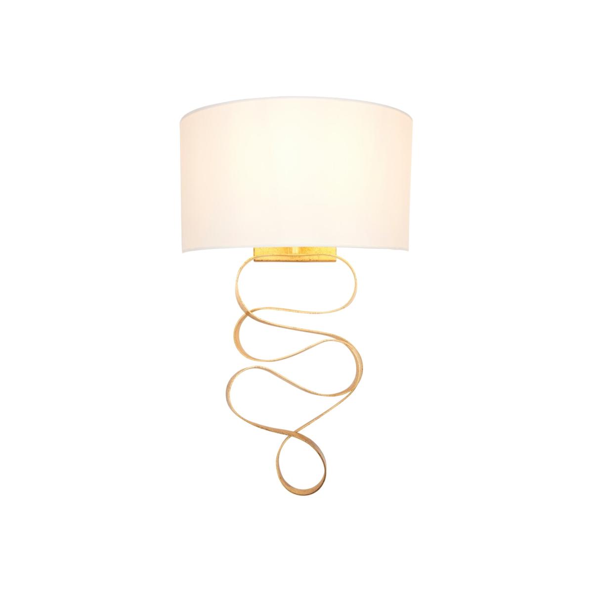 The ribbon-like detail of the Sanremo Gold Leaf and Ivory Cotton Fabric Wall Lamp makes it a wonderful choice for visual interest. The fabric shade diffuses the light for lovely illumination and the gleaming finish adds sophisticated shine to the overall contemporary look.