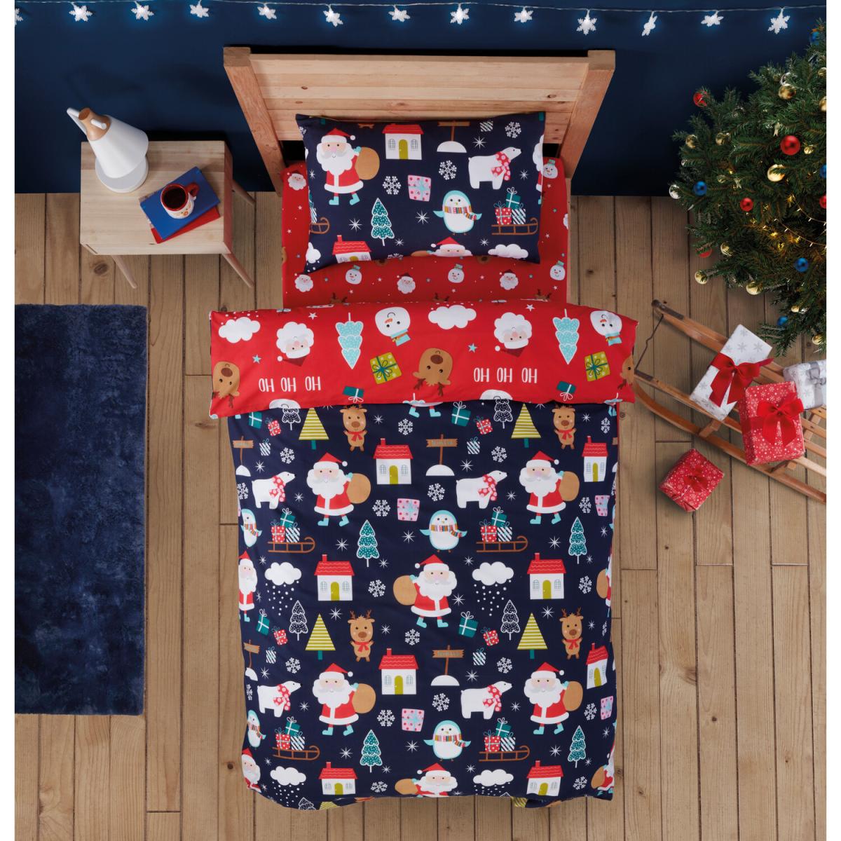 Santa and Friends Duvet Cover and Pillowcase Set - Navy