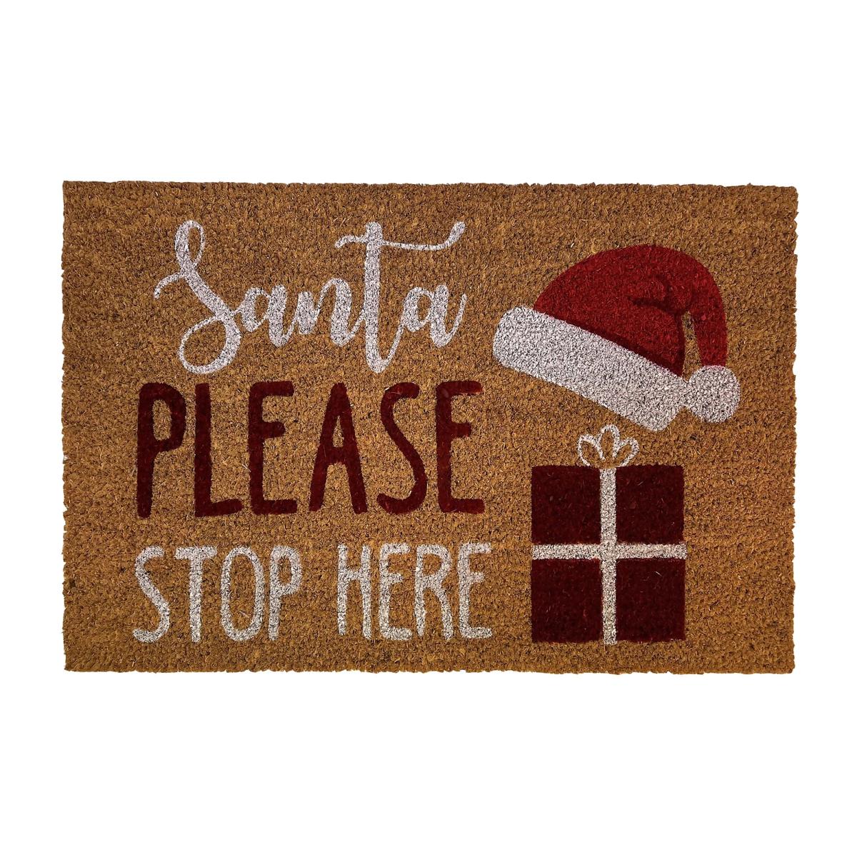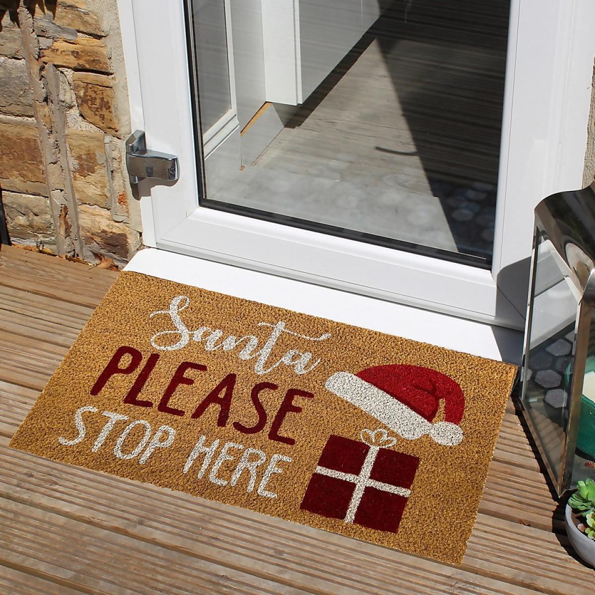 Spruce up your entranceway this season with this fun and trendy Santa Stop Here doormat design. This is the perfect way to add a splash of festive style to the home. The eco friendly coconut husk pile is abrasive and an effective dirt remover, helping to keep homes debris free.
