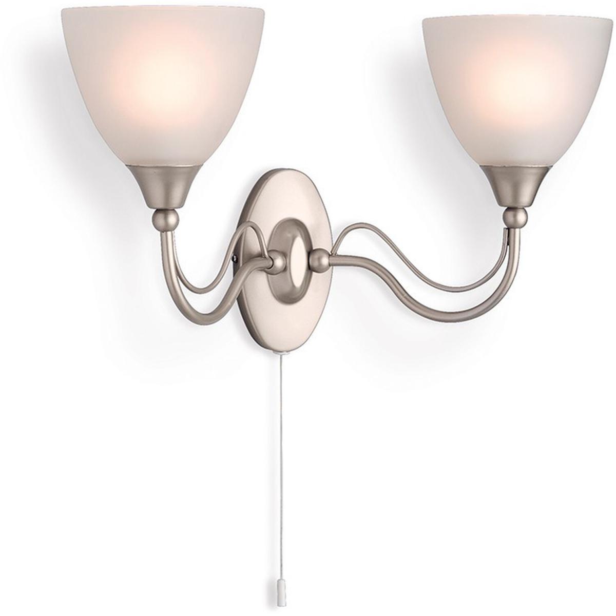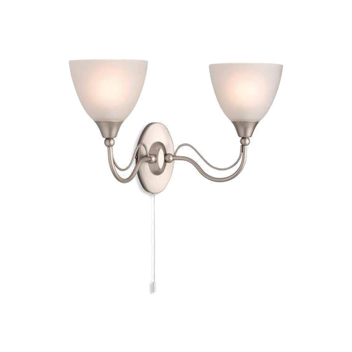 Santana Switched 2 Light Indoor Wall Light Satin Steel E14 - Opal Glass