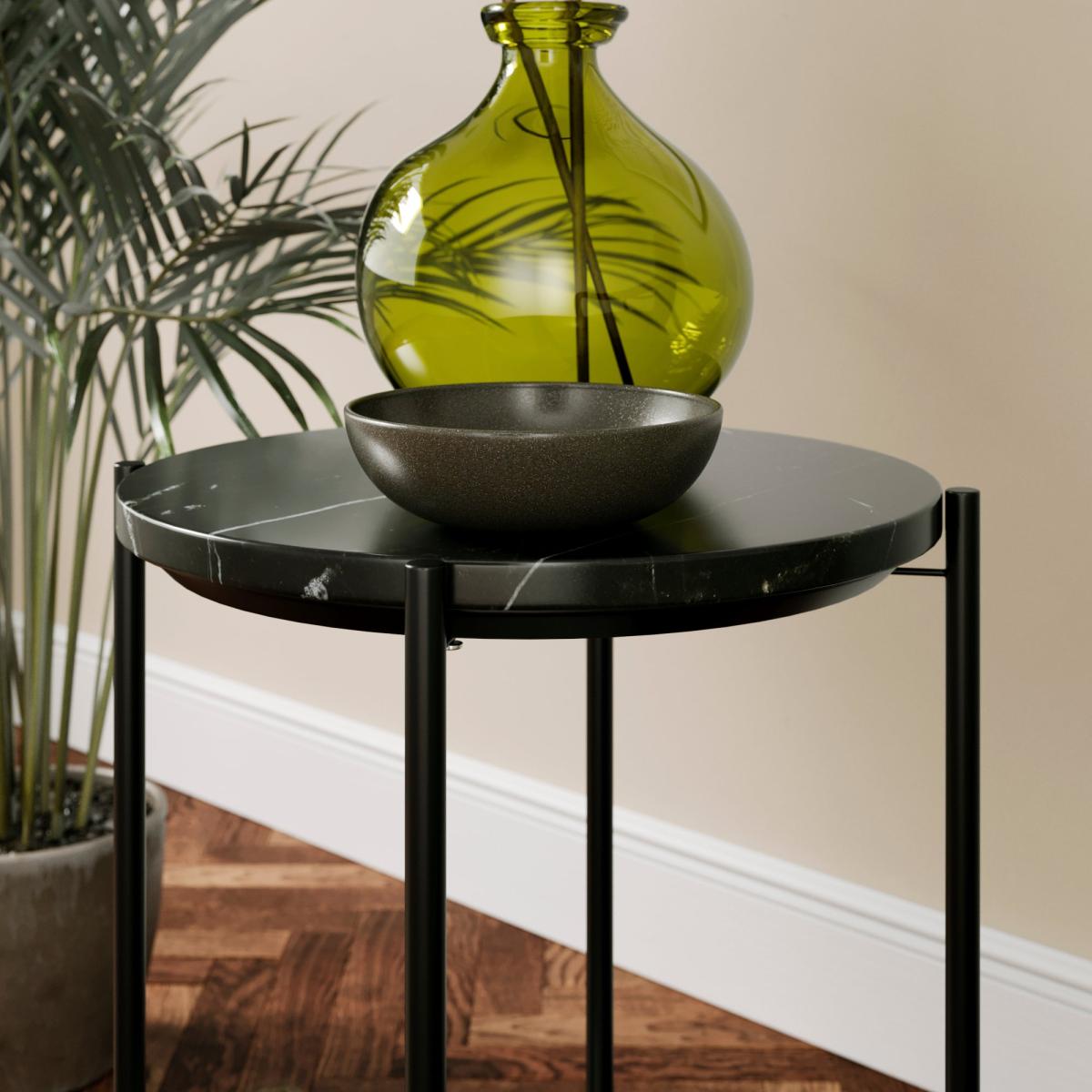 I love the Santi side table for its clean yet striking combination of mango wood and black marble, which makes it versatile enough for both modern and eclectic interiors. It works particularly well in minimalist spaces, adding a touch of warmth and texture, but can also complement industrial or mid-century styles with its sleek black frame. For styling, I suggest placing a statement vase or a small stack of books on top to emphasise its practical use, while keeping accessories simple to let the materials shine. Its compact size makes it ideal for beside sofas or beds, offering a functional surface without feeling bulky.