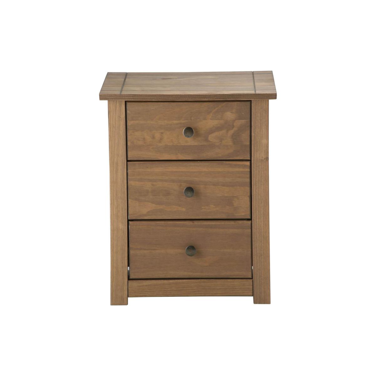 The Santiago 3 Drawer Bedside demonstrates great craftsmanship from its rustic wood construction to give it that desirable handmade look. The Santiago range has been made from solid pine with a beautiful waxed finish, zinc alloy handles and wooden drawer runners. Please note, unfortunately we cannot deliver this item to the Channel Islands.