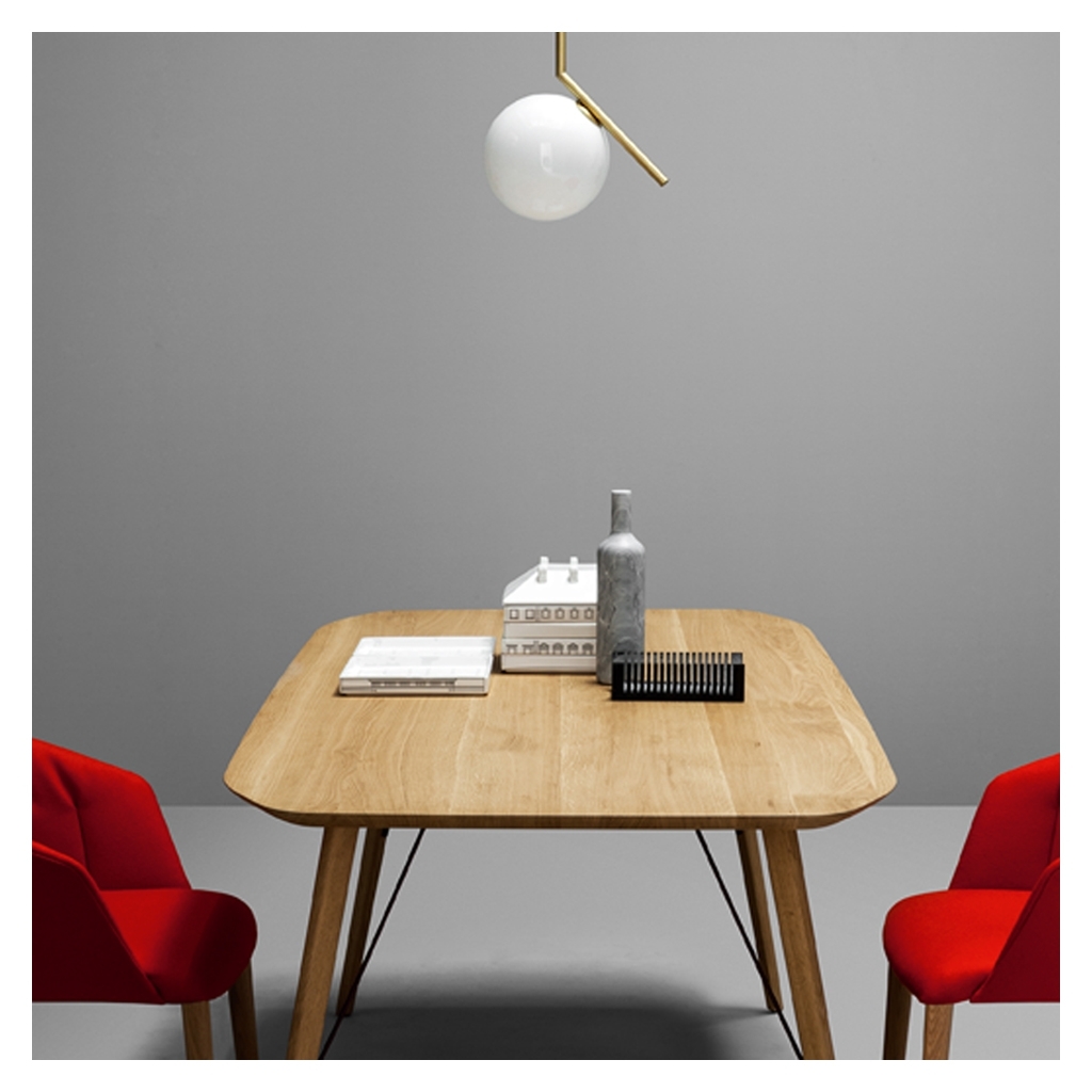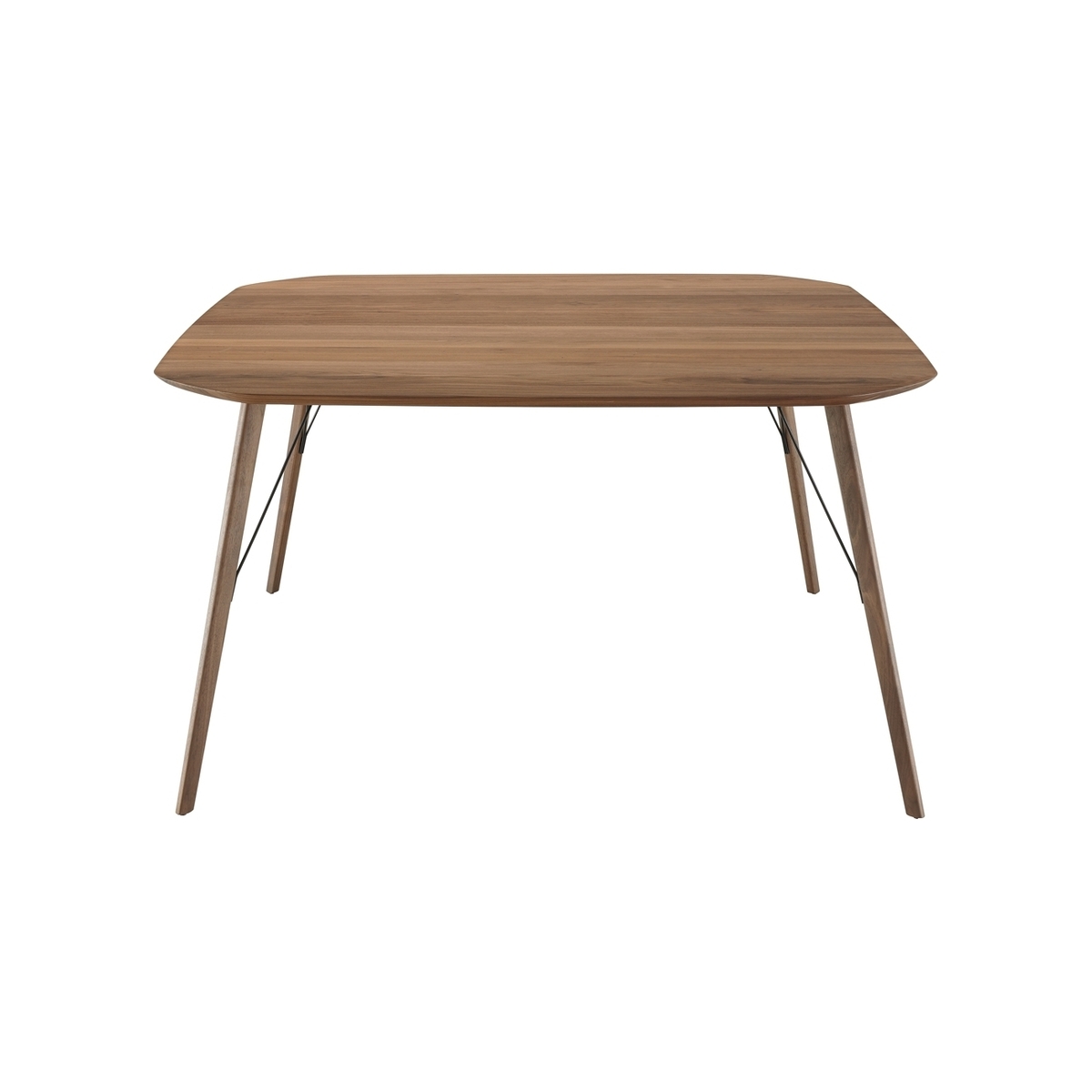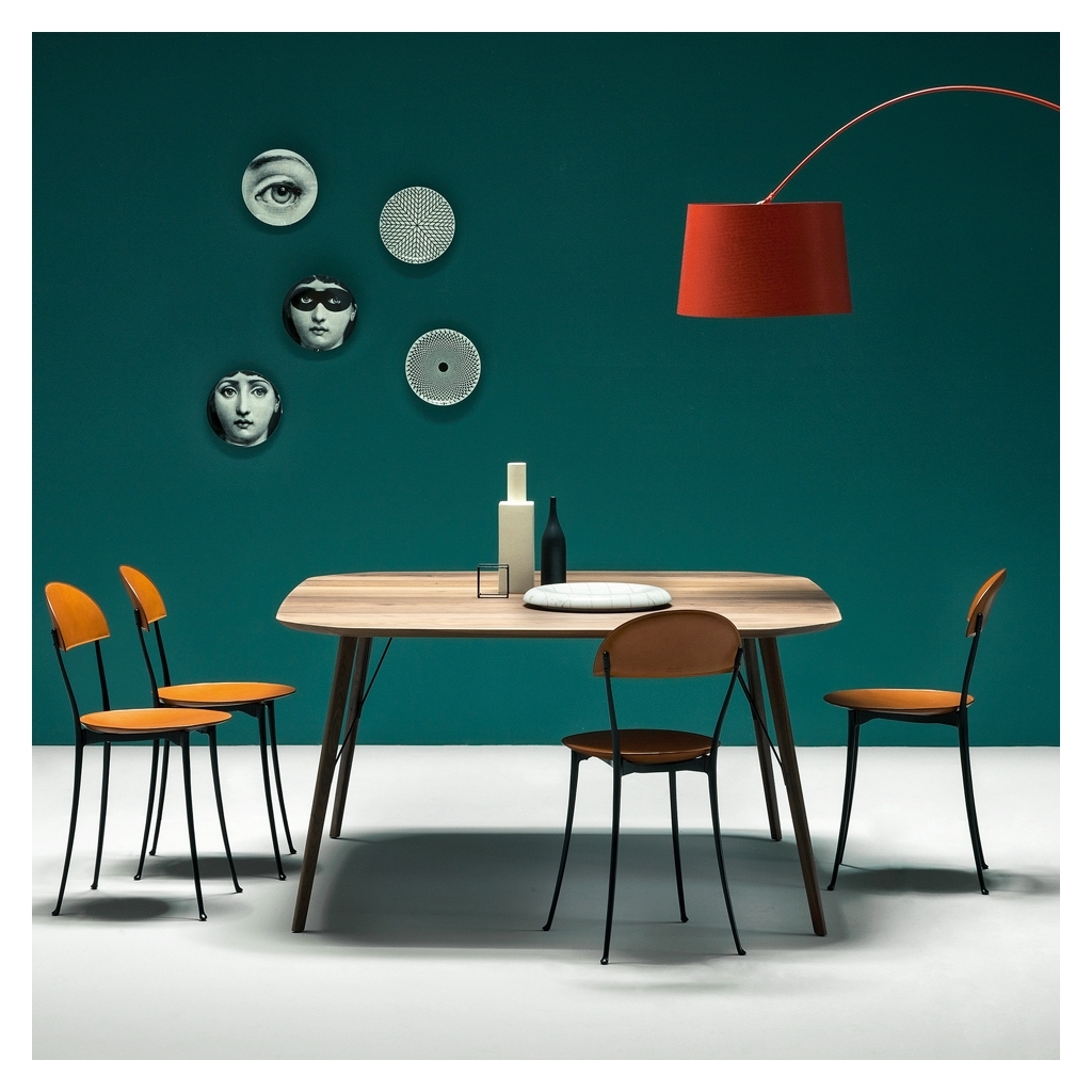 Crafted from solid walnut, the Santiago Dining Table showcases a slender outline, reminiscent of the forms of aircraft wings, and was designed by Frank Rettenbacher for specialist Italian furniture manufacturer, Zanotta, in 2015.Created with the intention of bringing the same lightness provided by metal tables to wooden alternatives, the table is elegantly composed of solid walnut, painted with a natural treatment to enhance the grain. Gently tapered legs elevate a refined top, supported by additional wires that enhance the industrial essence of the design. Inspired by the architecture of Santiago Calatrava, after whom it is named, the table reinterprets Calatrava's signature steadiness, to become one of the most lightweight solid walnut tables available today. Rettenbacher explains, "The soft edges and the underside emphasise lightness and improve comfort to naturally invite people to gather around. "A timeless contribution from one of the leaders in Italian industrial design, the Santiago Dining Table in a walnut finish makes an informed addition to any space, as a family-friendly design classic.