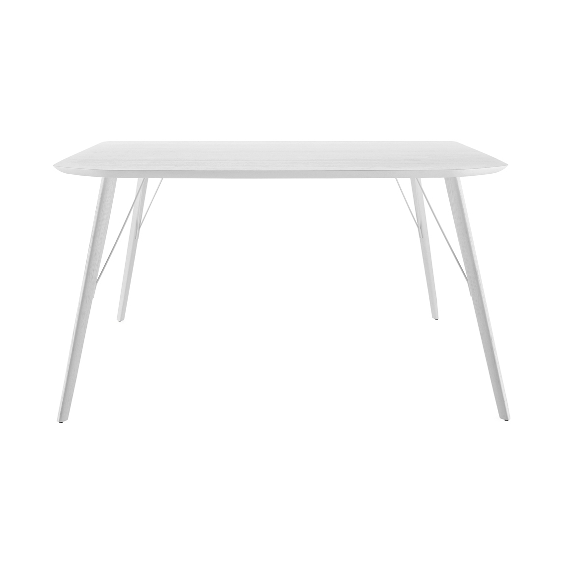 Crafted from open pored, white-painted oak, the Santiago Dining Table showcases a slender outline, reminiscent of the forms of aircraft wings, and was designed by Frank Rettenbacher for specialist Italian furniture manufacturer, Zanotta, in 2015.Created with the intention of bringing the same lightness provided by metal tables to wooden alternatives, the table is elegantly composed of white oak, with gently tapered legs that lead to a refined top, supported by additional wires that enhance the industrial essence of the design. Inspired by the architecture of Santiago Calatrava, after whom it is named, the table reinterprets Calatrava's signature steadiness, to become one of the most lightweight oak tables available today. Rettenbacher explains, "The soft edges and the underside emphasise lightness and improve comfort to naturally invite people to gather around. "A timeless contribution from one of the leaders in Italian industrial design, the Santiago Dining Table in a white-painted oak finish makes an informed addition to any space, as a family-friendly design classic.