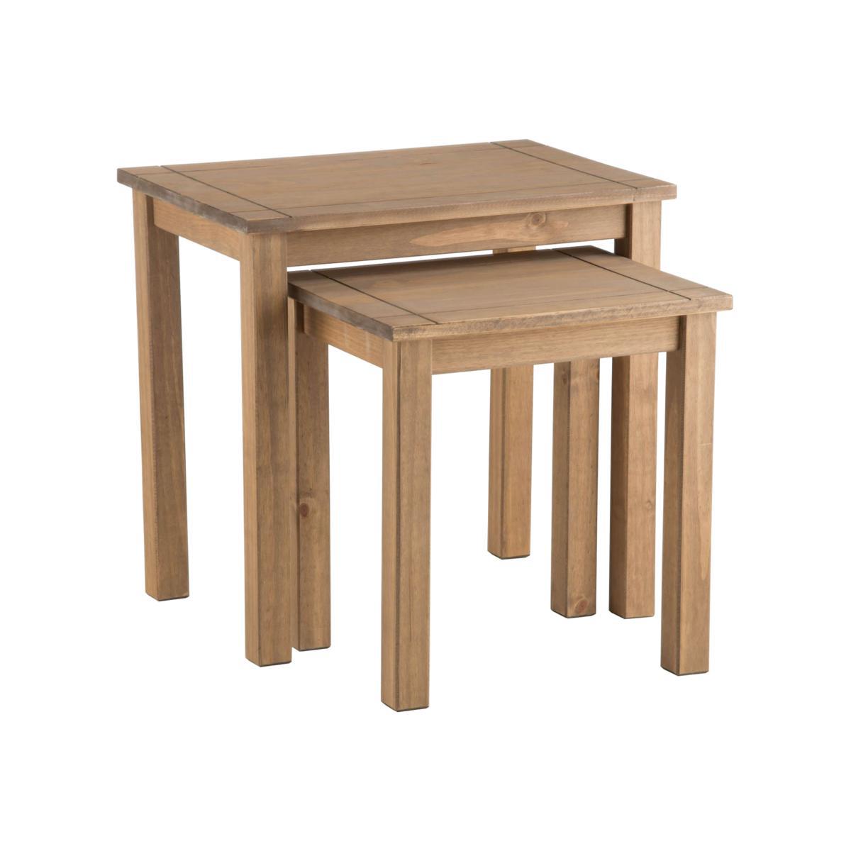 These nest of tables are a versatile addition to any living space, offering both practical surface area and storage options. I love the natural pine finish for its warm, understated look that complements both modern and traditional interiors. The brown tone works particularly well in neutral or earthy colour schemes, but can also add a touch of rustic charm to contemporary spaces. For styling, try grouping them together with accessories like candles or small plants for a layered effect, or use them separately as side tables or nightstands. Their compact size makes them ideal for small rooms or busy family areas where functionality is key without sacrificing style.