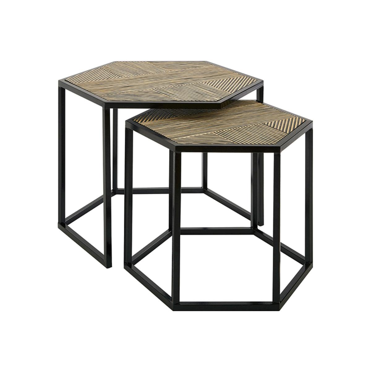 With style that looks good from every angle (and there’s a lot of them!), the sleek Santiago nesting side table set is the perfect accessory for entertaining guests. Featuring an artistic natural bamboo tabletop, both hexagonal tables have frames made from black coloured iron so as to beautifully blend bohemian style with a modern twist.