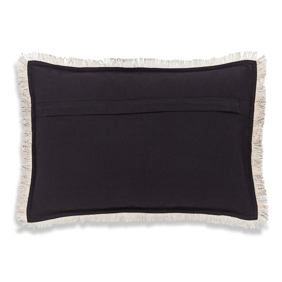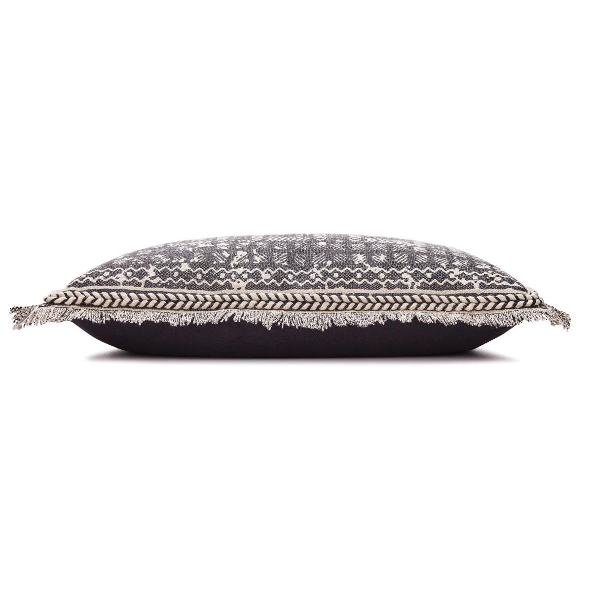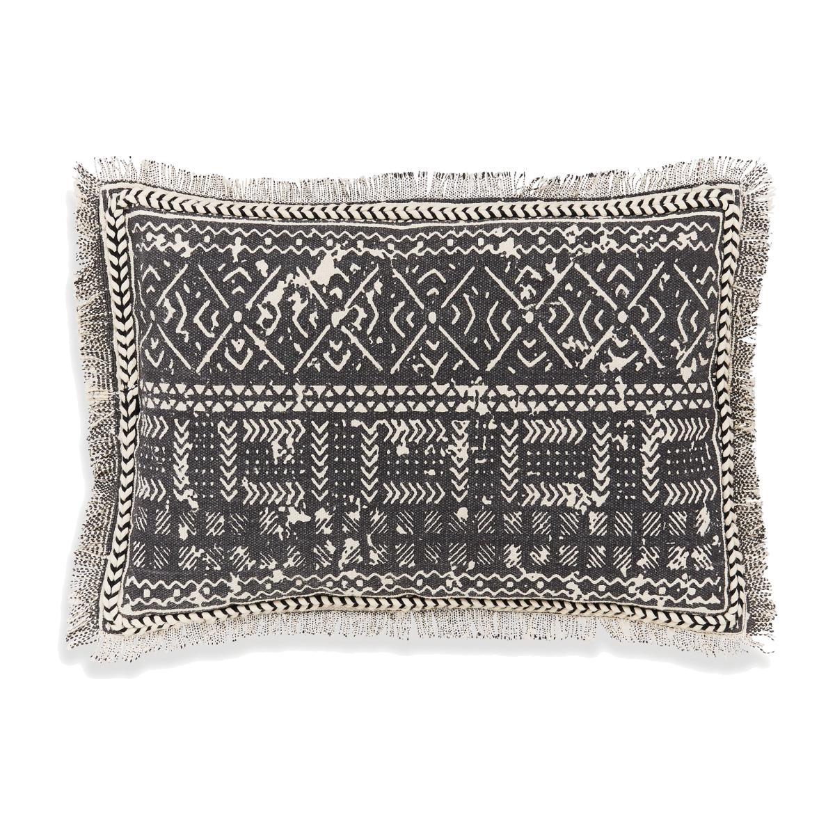 Crafted from woven cotton for a beautiful texture, this stylish cushion features an abstract Aztec design and is completed with fringed edges for a wonderfully tactile finish. Crafted in a cool charcoal colourway, this cushion brings a touch of modern style to any room and is designed with a removable cover for convenient care. Filled with plump polyester for lasting comfort, this cushion features a plain reverse and is ideal for bringing a global touch to your décor.
