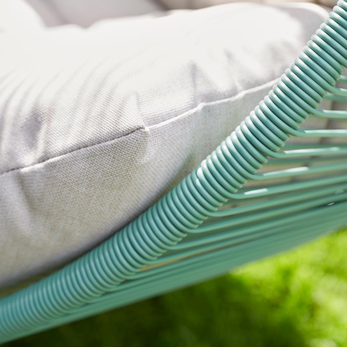 I love this outdoor chair for its playful yet modern design, making it a fantastic statement piece in any garden or patio. Its rounded, cocoon-like shape and pastel colour palette work well in both contemporary and boho-inspired gardens, adding a relaxed and inviting vibe. For styling tips, pair it with neutral or textured cushions and soft outdoor lighting to enhance its cosy feel. It also works well as a focal point in a lounge-style outdoor space, or even paired with a matching side table for functional comfort. Keep the surrounding greenery minimal or strategically placed to let the chair be the star-this ensures it remains a stylish and functional addition to your outdoor setup.