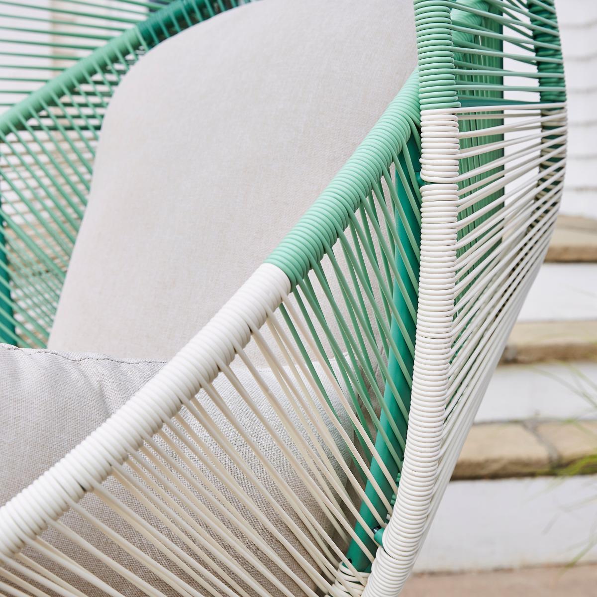 * Hanging Egg Chair * Sturdy steel frame * Weather resistant design Make a bold statement with the Santorini Egg Chair Brights. Showcasing vibrant, contrasting colours and a unique rattan weave, this hanging egg chair features a sturdy, powder-coated steel frame and weather-resistant design. Perfect for adding style and comfort to your garden or patio.