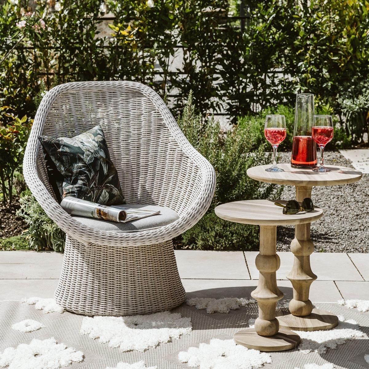 I love this garden lounger for its fresh, contemporary take on outdoor furnishings. The neutral Chalk and Grey Linen upholstery makes it incredibly versatile, working well in both modern and more traditional garden settings. Its rounded, sculptural shape adds a touch of relaxed elegance, perfect for creating a cosy corner or laid-back lounging zone. Styling tips include pairing it with neutral or pastel cushions to soften the look, and adding textured throws for extra comfort. It’s especially effective in sun-drenched or shaded outdoor spots, where its design invites relaxed outdoor living. It also works nicely paired with wooden or rattan elements to emphasise a natural, organic vibe.