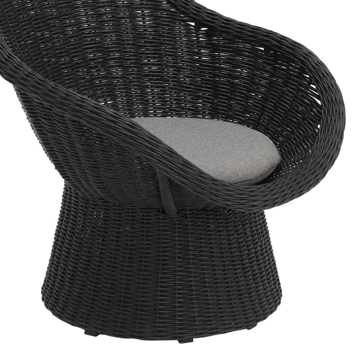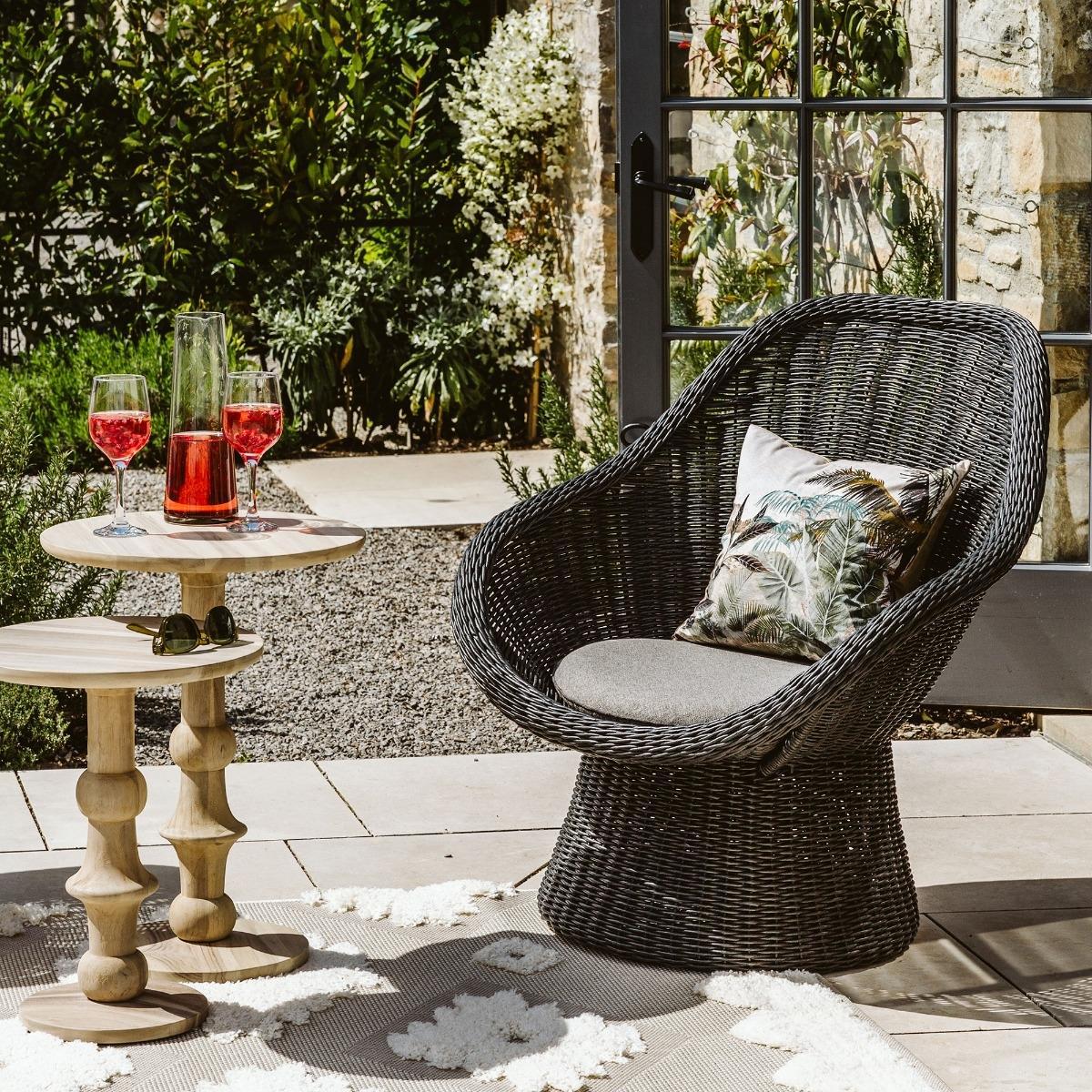 I love this garden chair for its contemporary yet relaxed look, making it versatile for both modern and more traditional outdoor spaces. The black rattan weave offers a sculptural, tactile element that works well in urban patios or lush garden settings, especially when paired with natural fibres or colourful cushions. Its rounded, open shape invites comfort and encourages laid-back seating, while the Lava and Dove Linen cushions add a soft, neutral touch that can easily be styled with vibrant throws or nearby flora. Practical tips include placing it around a coffee table in a shaded corner or mixing with other rattan and metal pieces for an eclectic, inviting arrangement. This piece is about striking a balance between style and comfort, making it a stylish addition that’s functional year-round.