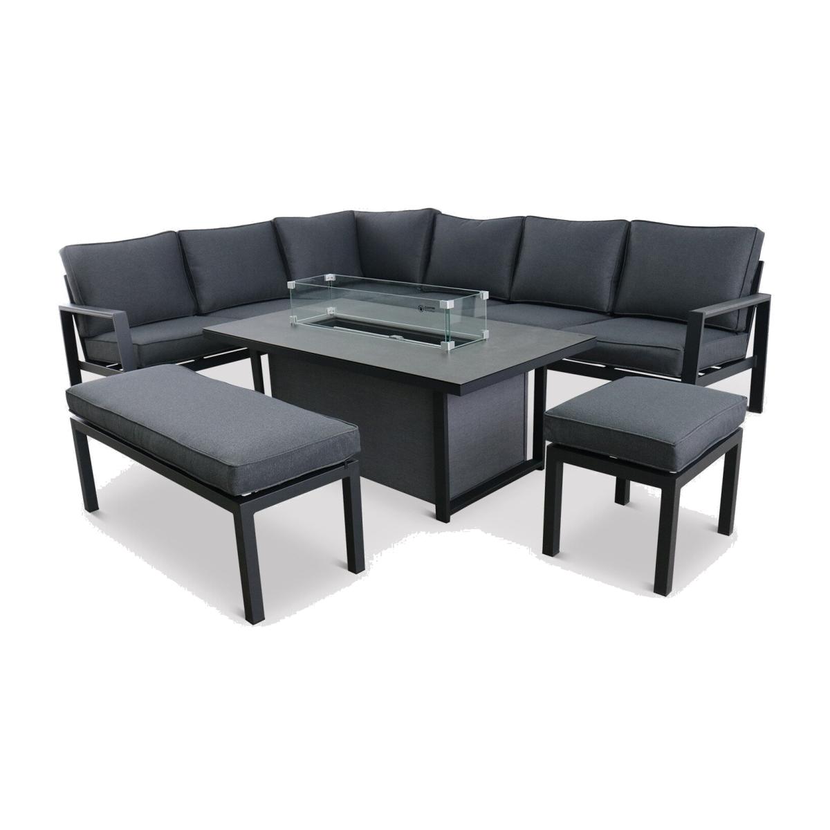 Santos Large Garden Firepit Corner Sofa Set, Aluminium, Grey | Barker & Stonehouse