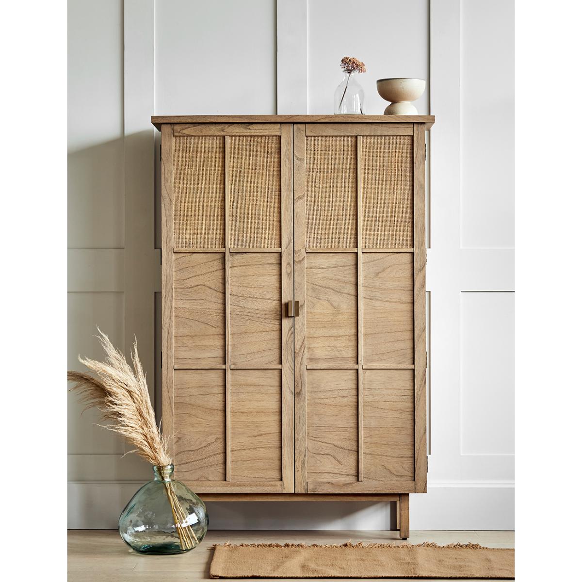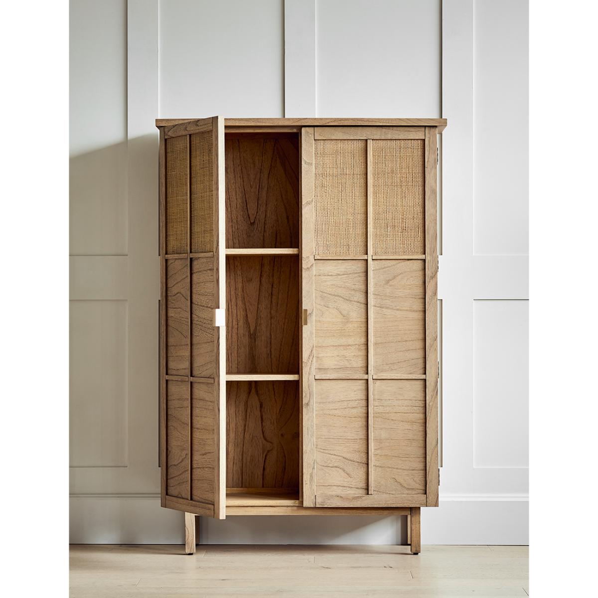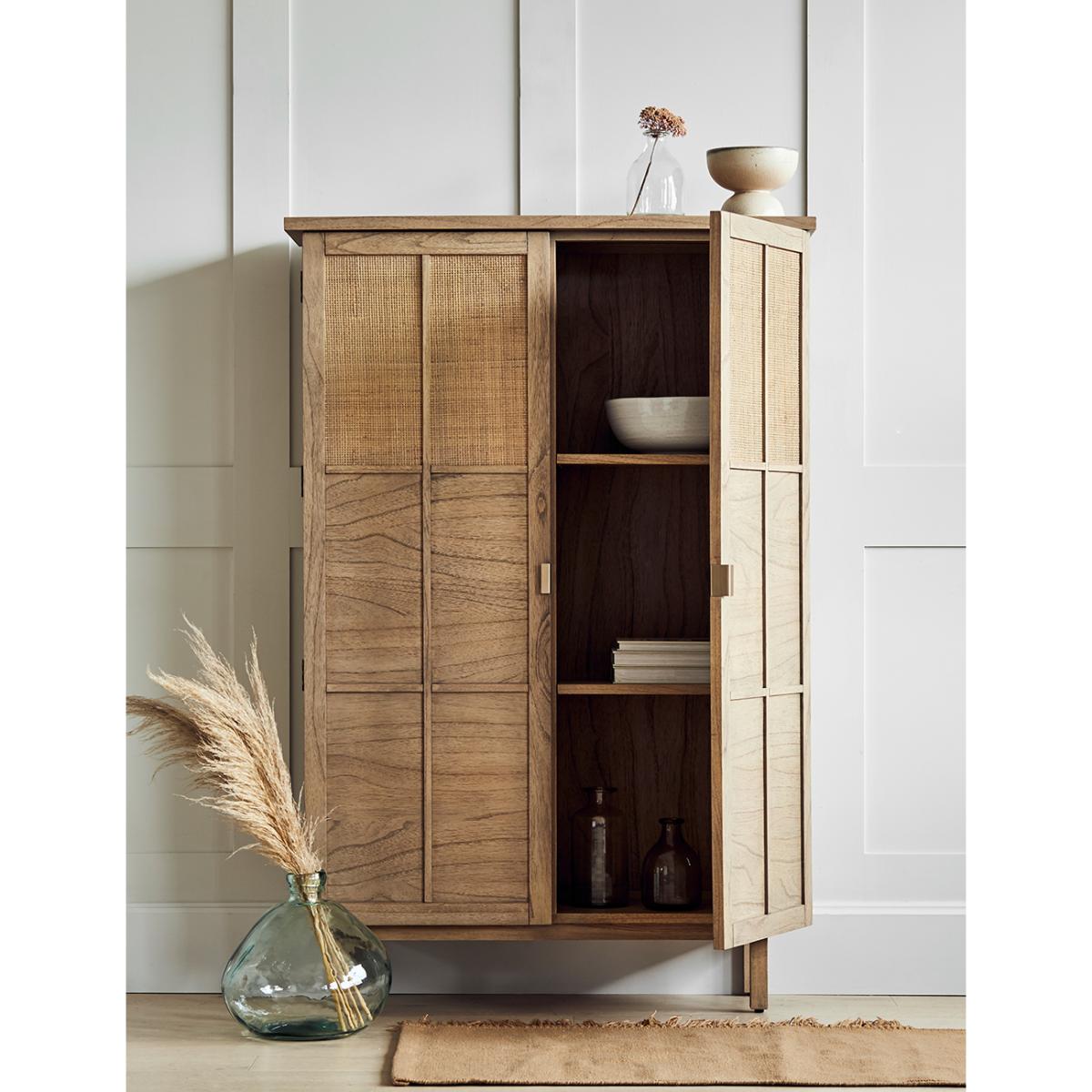 I love this piece for its clean, minimalist design and natural timber finish, which makes it highly versatile across different interiors. It works particularly well in Scandi-inspired spaces or coastal interiors where light wood tones enhance a calm, airy feel. Practical styling tips include pairing the cabinet with simple, functional accessories - think woven baskets, ceramic tea sets, or neutral-toned storage boxes - to keep a streamlined look. Its straightforward design also makes it perfect for use in kitchens, living rooms, or even bedrooms, providing ample storage while adding a touch of warmth and understated elegance.